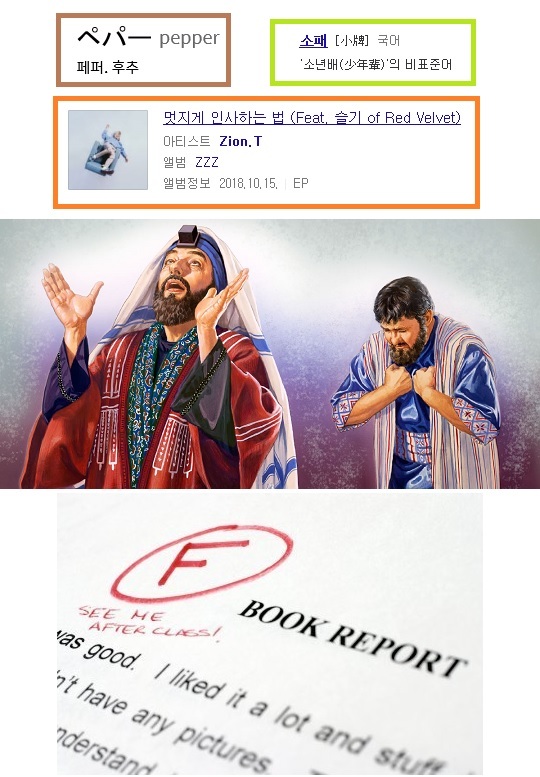 앨범명은 '멋지게 인사하는 법'이므로, 형제에게 배타적이고[남남으로 여기고 후추를 뿌림], 영적으로 무지하며[잠듦], 쪼잔하고[소패], 스스로를 지혜롭게 여기는[알죠] 성도가 우쭐거리면서 하나님께 기도한다는 뜻이 됩니다.