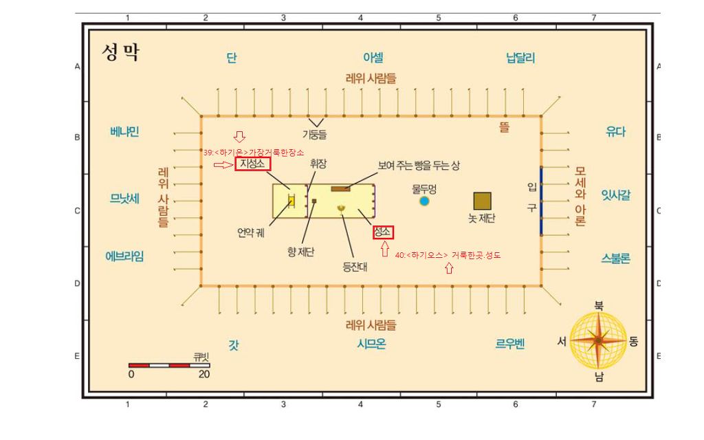 크고 높은 성곽이 있고 열 두 문이 있는데 문에 열 두 천사가 있고 그 문들 위에 이름을 썼으니 이스라엘 자손 열 두 지파의 이름들이라