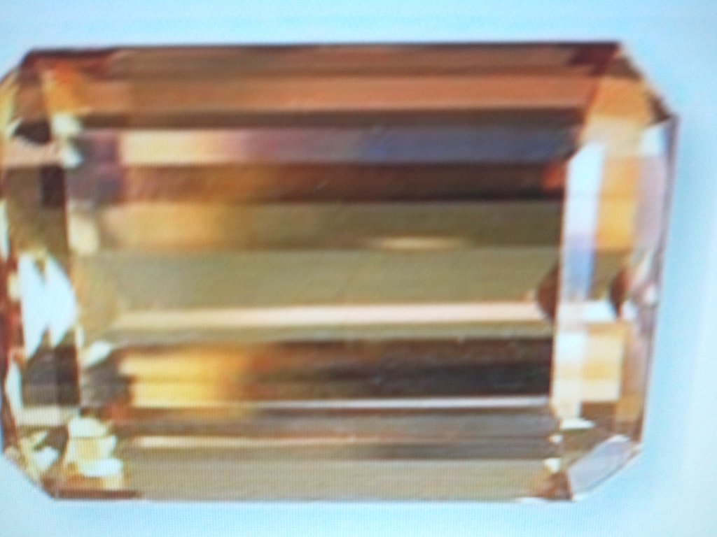 네모난 프리즘 모양을 하고 있는데 거기에 백색 ,황색, 적색, 회색,자주색, 연한 녹색이 종합적으로 보여지는 아름다운 보석이다.