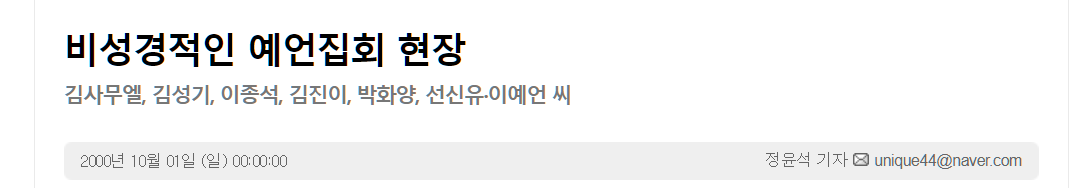 기자는 최근 약 2달간 연속적으로 열린 6곳의 예언 집회에 직접 참여해 보았다. '예언'의 현장을 직접 취재해 보기 위해서다.