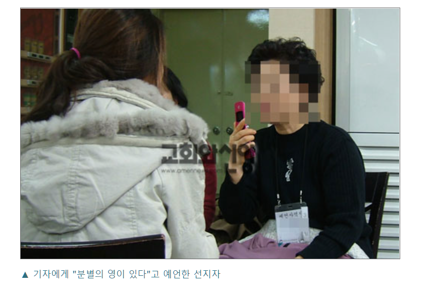 '예언 집회'의 문제는 그곳에 참석하는 이들에게서도 발견된다. 집회 참석한 중년의 한 여신도의 말이다.