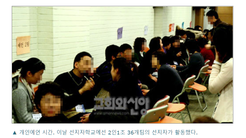 현장을 바꿔보자. 9월1일~5일. '사도적 선지자 초청 지도자 훈련 컨퍼런스'라는 생소한 이름의 집회가 열렸던 서울 송파구에 위치한 신약교회. 미국인 예언자라는 빌랙키라는 사람까지 초청한 나름대로 외형에 신경을 쓴 집회였다. 집회 참석자는 약 100명에 달했다. "예언적 기름 부음과 능력 나누어줌과 은사들과 신유와 축사와 예언들이 나타날 것입니다"는 자체 광고 문구처럼 이곳에서도 예언이라는 행위가 진행되고 있었다. 집회중 빌랙키가 어느 모녀 사이에 발을 멈췄다.