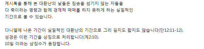 7년 대 환난 즉 환난 전 휴거를 주장하는 사람이 짐승이 등장하여 통치하는 기간을 7년인것 처럼 ㅋㅋㅋㅋ