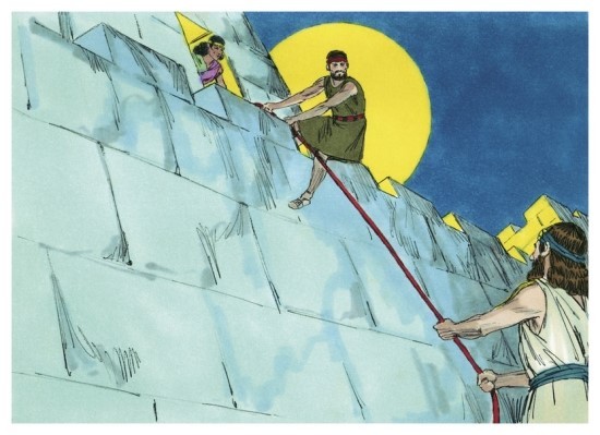 여호수아의 명령으로 여리고성을 정탐하던 정탐꾼들이 기생 라합의 집에 머물 때, 그 정체가 탄로나 붙잡힐 위기를 맞게 됩니다. 이 때 기생라합은 기지를 발휘해 정탐꾼들을 지붕에 숨겨두고, 그들을 붙잡기 위해 온 병사들을 따돌립니다.