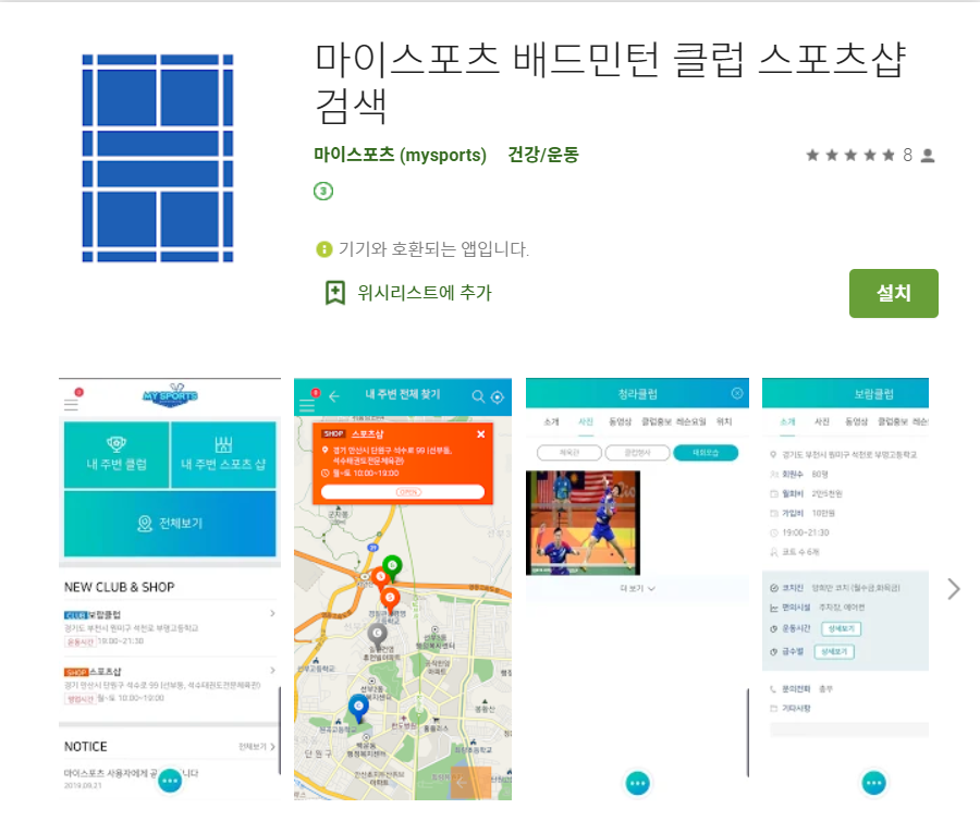 이제 편리하게 핸드폰 앱으로 내 주변 배드민턴 클럽과 스포츠용품 샵을 검색 할 수 있습니다.