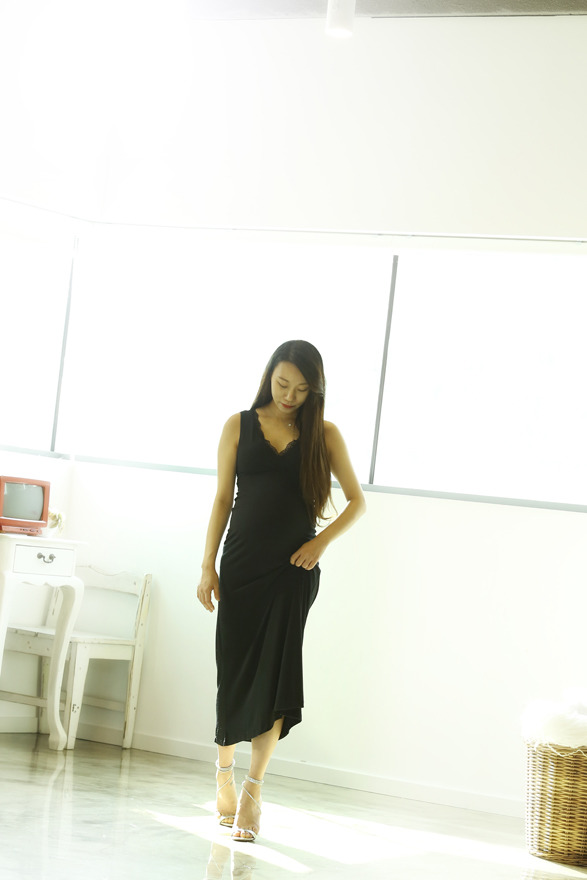 직접 고르신 블랙 원피스로 코디 후 시작되는 촬영이
