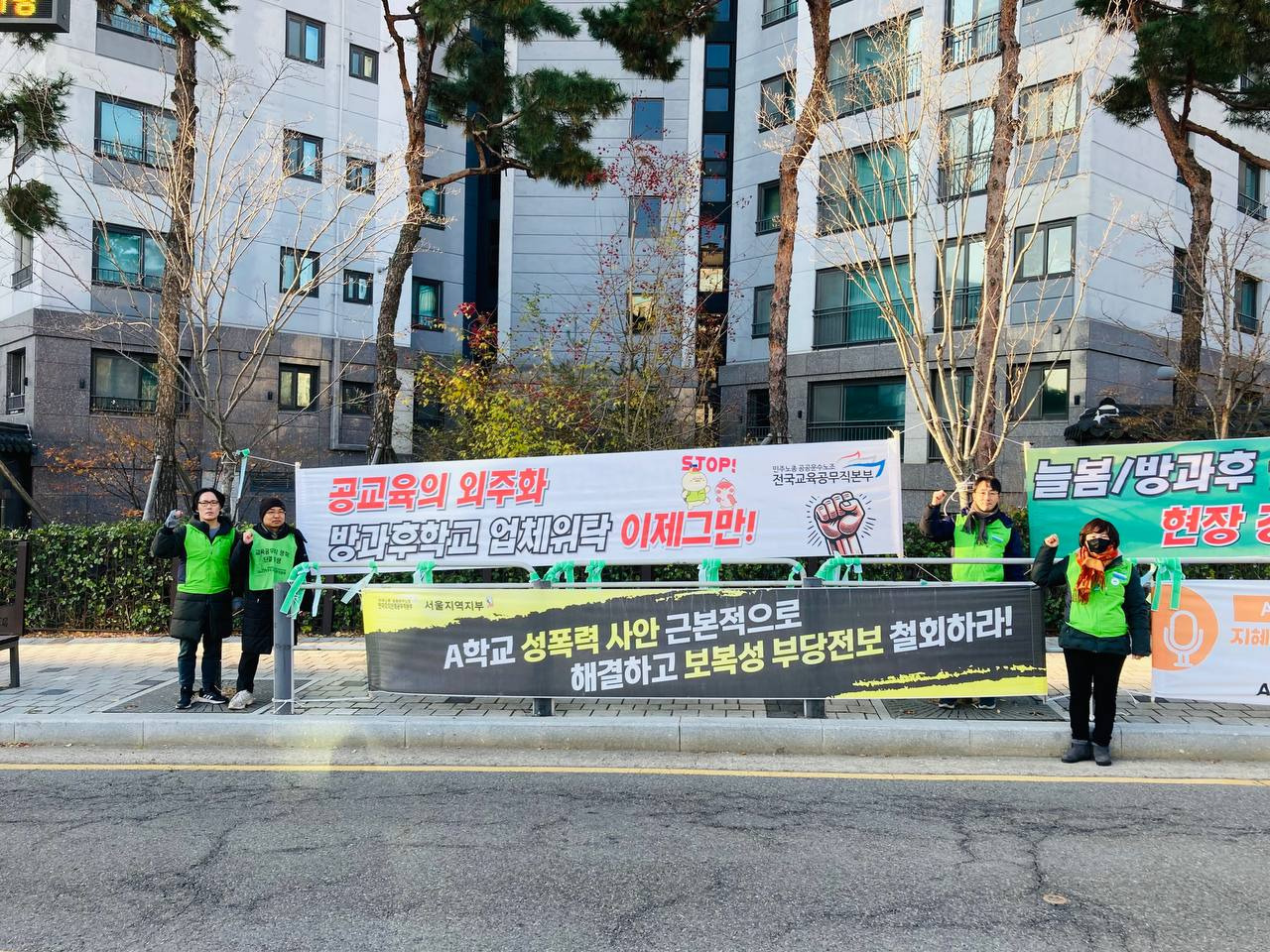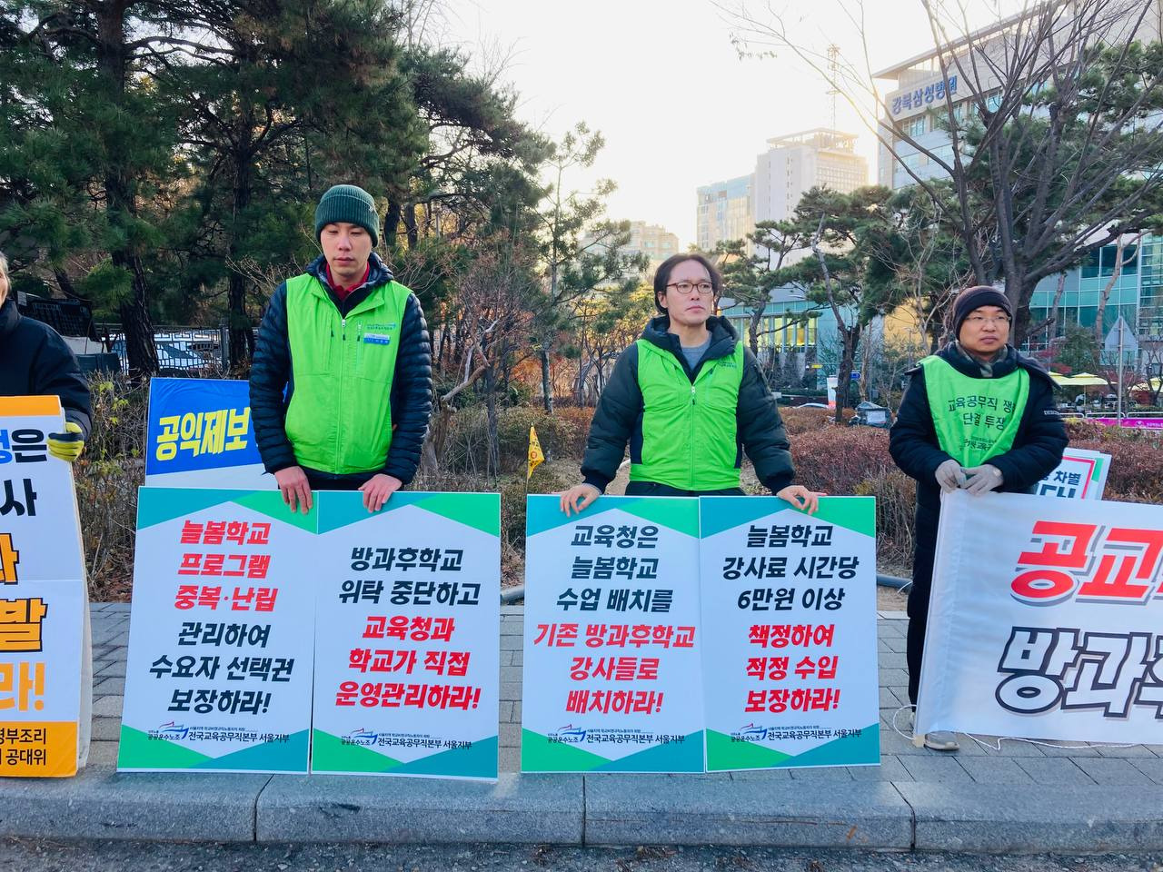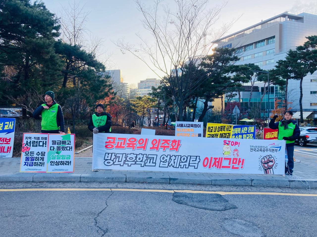 서울지부 피켓팅, 선전전 작성자방과후학교강사분과|작성시간24.12.10|조회수24 목록 댓글 0 글자크기 작게가 글자크기 크게가 12월 9일 아침.서울지부 출근 피켓팅, 현수막 걸었습니다.서울지부 동지들, 서울 분과장, 전국 분과장이 함께 했습니다. 다음검색 현재 게시글 추가 기능 열기 북마크 공유하기 신고 센터로 신고 댓글 댓글 0 댓글쓰기 답글쓰기 댓글 리스트