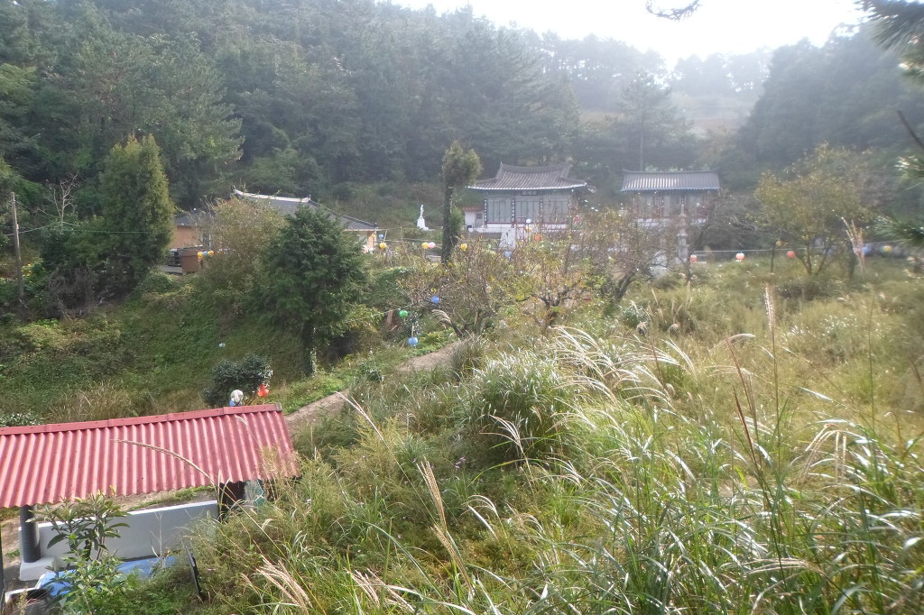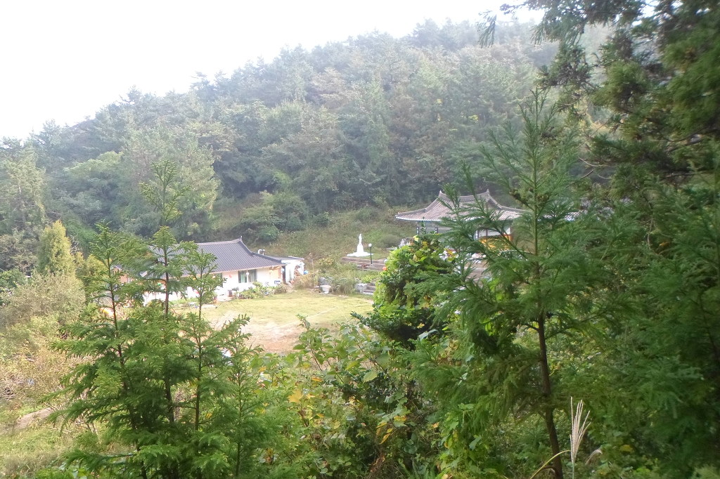 아래그림/올라가면서 左로 보이는 [평일정사]모습이다.빨간지붕 우물(샘)지붕이다.