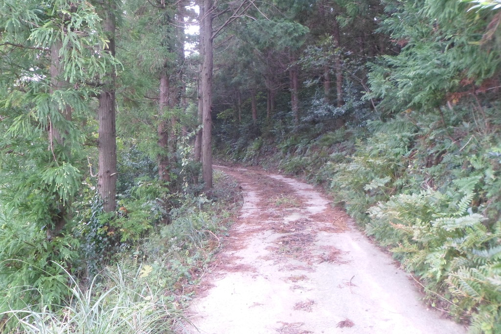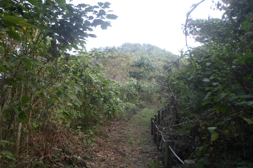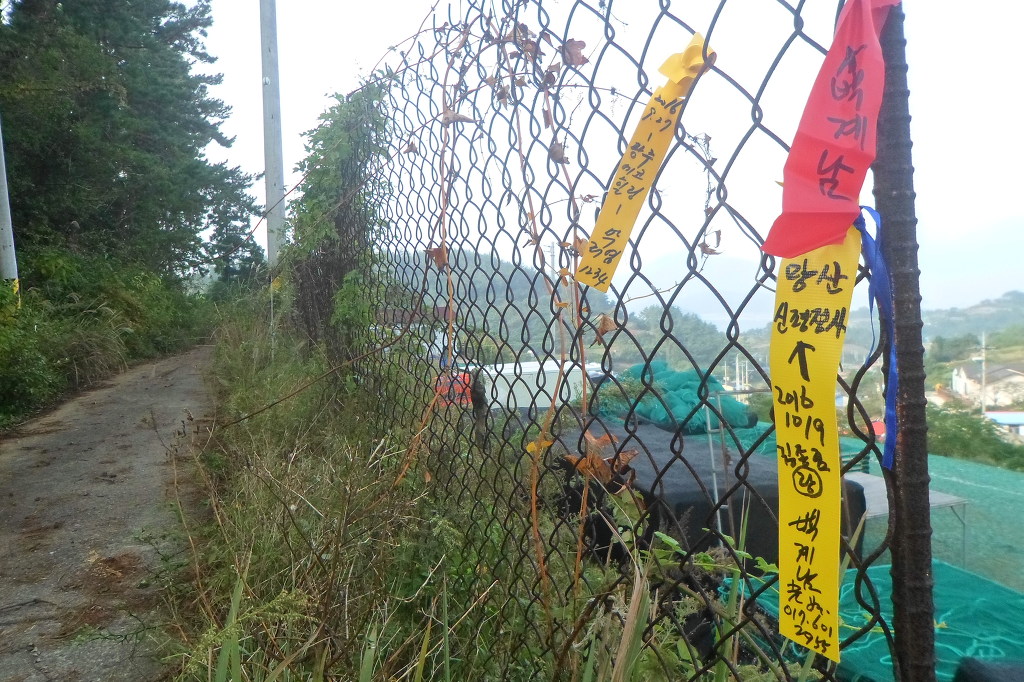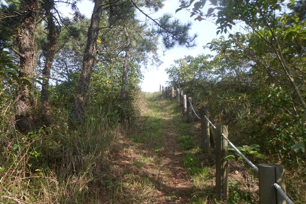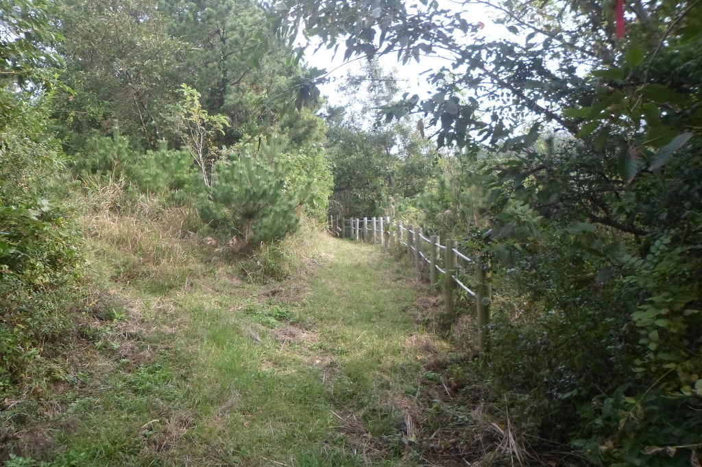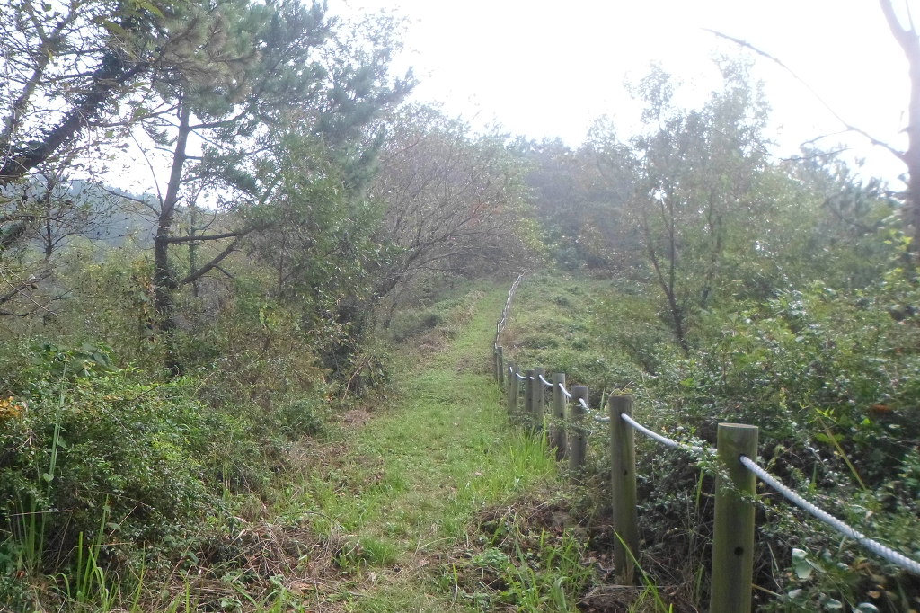 아래그림/시멭트길 끝나고 비포장길인데 右측으로 망산까지 로프가드레일이 설치돼여 있다.