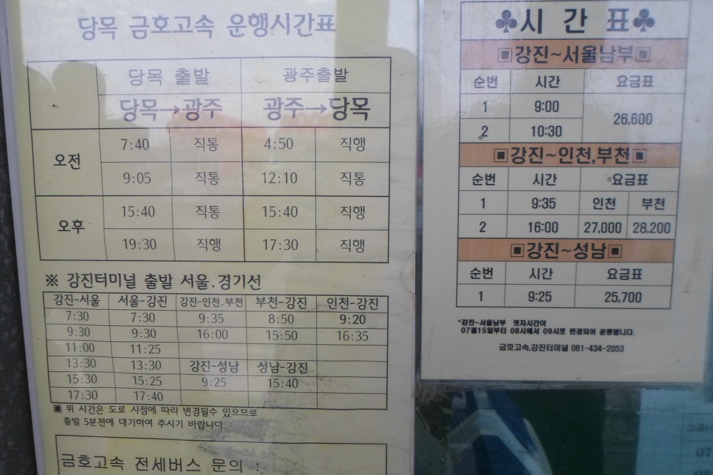 아래그림/[당목]마트와 매표소를 겸하고 있는 버스정유장 시간표 이다.*[금호고속당목영업소] 061)554-9455번임.