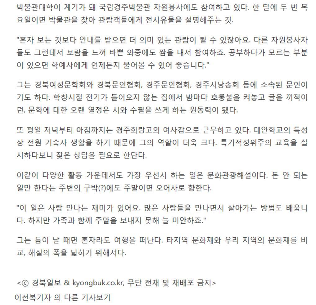 정만자 여기숙사 사감선생님 언론보도 자료 작성자승우아빠(14년)|작성시간15.07.05|조회수283 목록 댓글 1 글자크기 작게가 글자크기 크게가 다음검색 현재 게시글 추가 기능 열기 북마크 공유하기 신고 센터로 신고 댓글 댓글 1 댓글쓰기 답글쓰기 댓글 리스트 작성자동규맘(14년 대구) | 작성시간 15.07.07 우리 아이들에게 많은 애정을 가지고 때로는 엄마로 때로는 상담가로 때론 조언가로서 모든 역할을 하고 계신 선생님이십니다.이번 1닝 명예사감 활동을 통해 다시한번 더 사감선생님의 고마움을 아라게 되었습니다.정만자 사감선생님 사랑하고 존경합니다.....() 댓글 전체보기