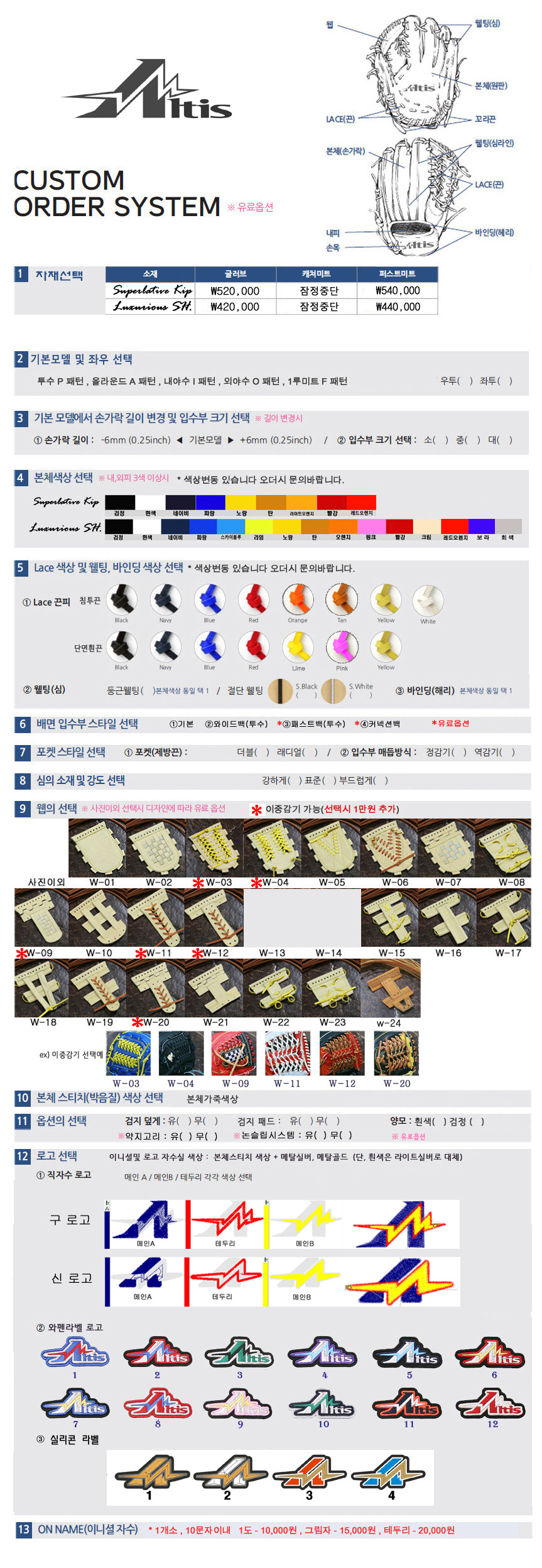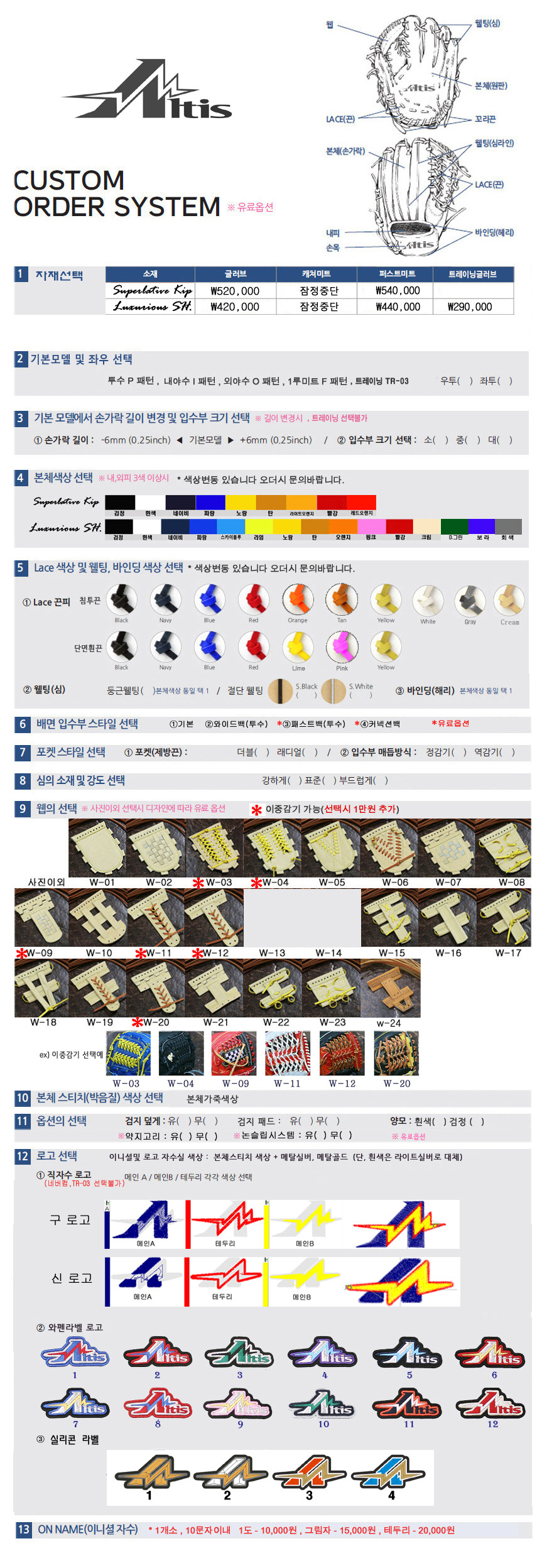 오더시 W-03,W-04,W-09, W-11, W-12, W-20 웹에 끈이 이중감기가 들어가는 경우 1만원의 추가요금이 적용됩니다.