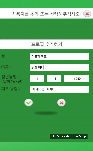 처음에만 피부유형을 "백인,흑인, 아시아인" 중에서 선택하시고 기본정보 입력하시면 두번째부터는 바로 스코라드 점수를 체크할 수 있답니다.