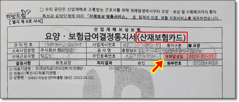 ❏ 두번째 : 환자에게 발급된 산재카드를 확인합니다.