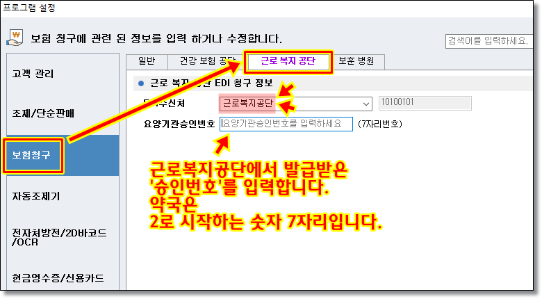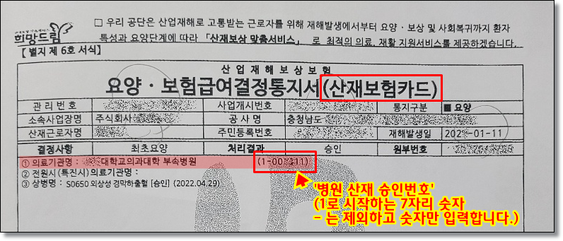 요양기관승인번호는 위의 ①번과정 진행시 근로복지공단에서 발급해줍니다.