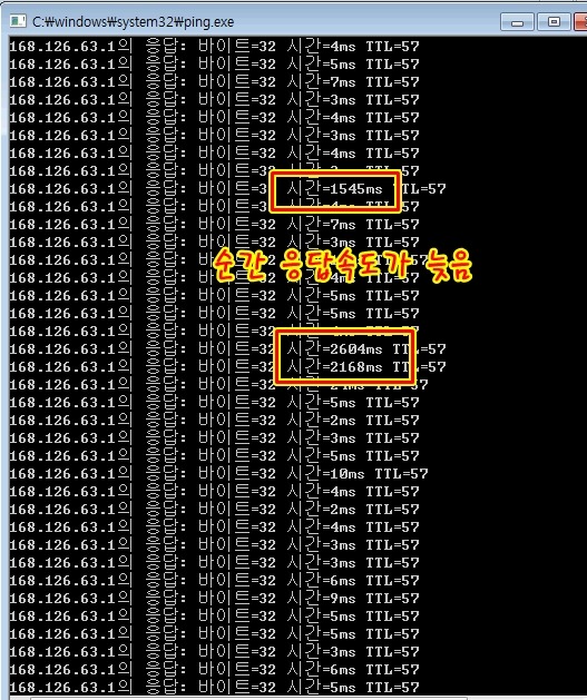 Ping 이란? 목적지까지 데이터가 갔다오는 시간을 측정해주는 프로그램이라고 간단히 생각하시면 됩니다. 그런데 다녀오는시간이 길면 인터넷이 느리겠죠...