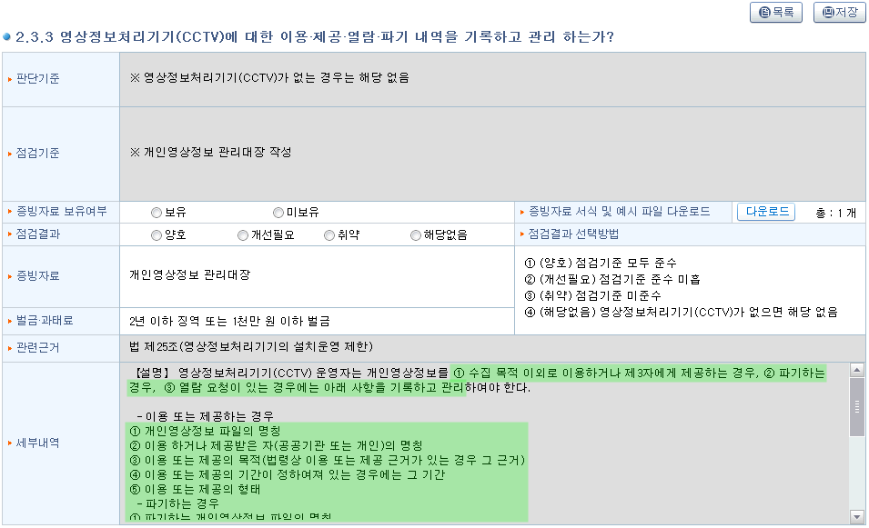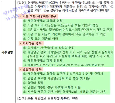 이용ㆍ제공ㆍ열람은 없더라도 파기는 있으니, 사용하시는 CCTV업체의 도움을 받아 작성하시면 될 듯 합니다.