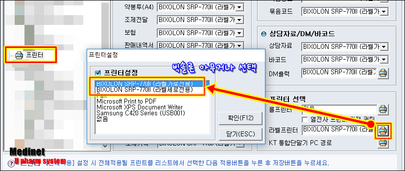 ▼ 유팜설정에서 '프린터설정'을 합니다.