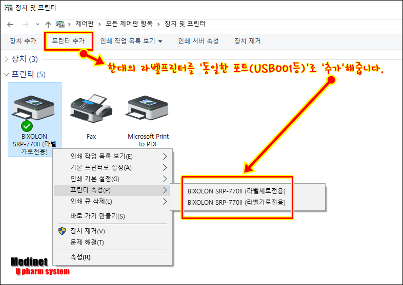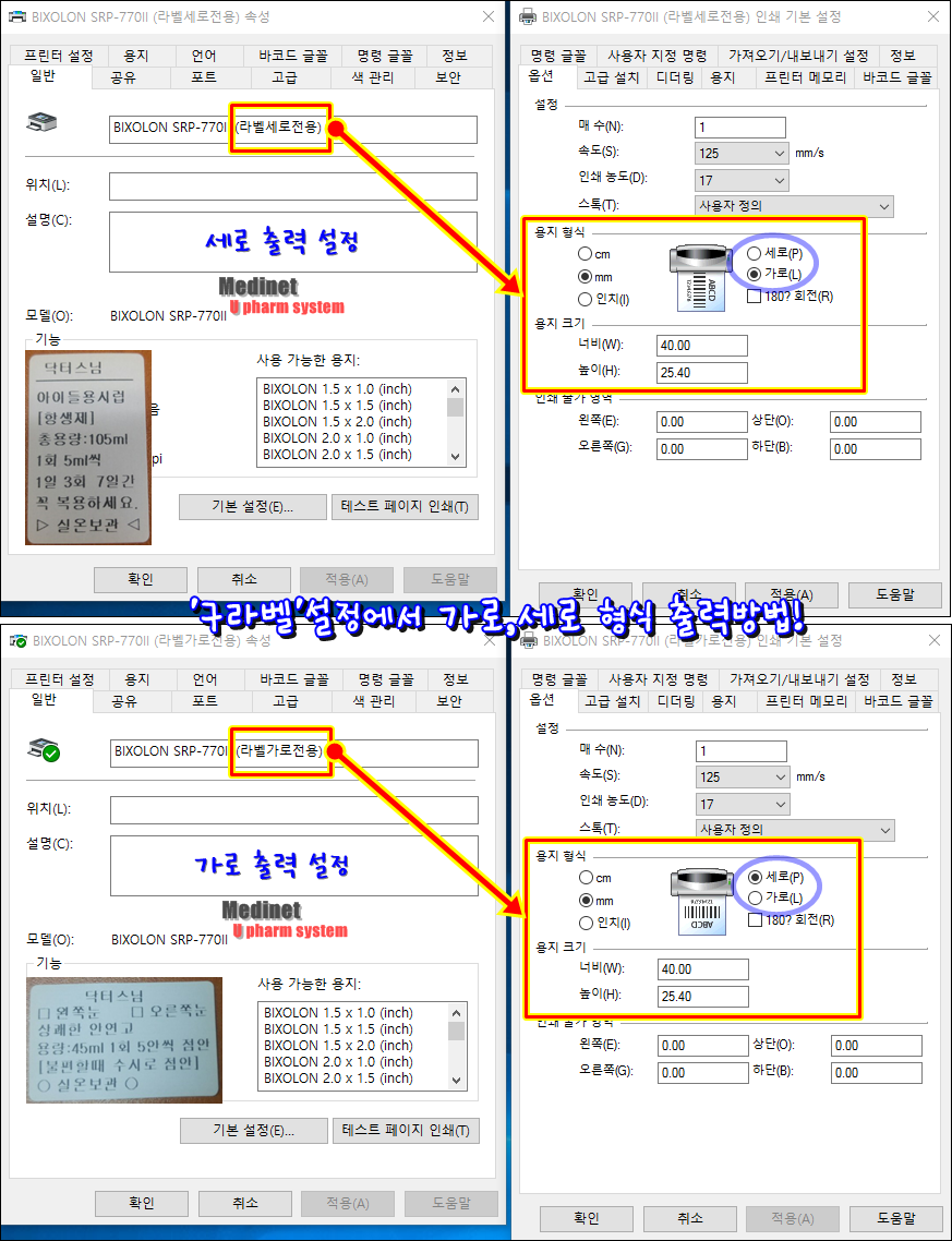 ▼ 가로형식과 세로형식을 출력하기위해 한 프린터로 두개의 드라이버를 설치합니다.