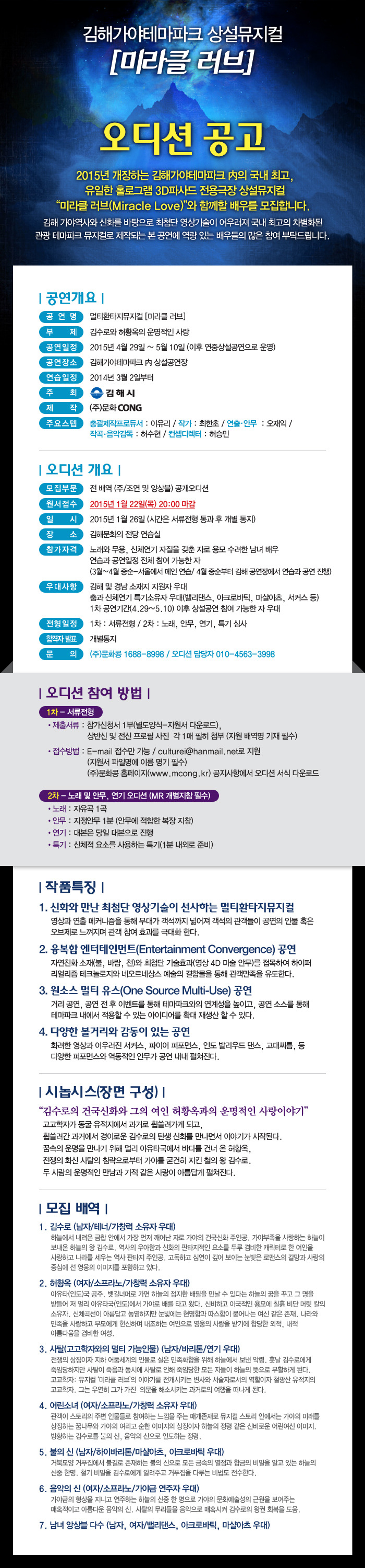 김해가야테마파크 뮤지컬 [미라클 러브] 오디션 공고 작성자MBC롯데아트홀|작성시간15.01.08|조회수10 목록 댓글 0 글자크기 작게가 글자크기 크게가 첨부파일첨부된 파일이 3개 있습니다. doc 파일 김해가야테마파크 미라클러브 오디션 지원서.doc 다운로드 pdf 파일 김해가야테마파크 미라클러브 오디션 공고.pdf 다운로드 jpg 파일 김해가야테마-오디션공고.jpg 다운로드 다음검색 현재 게시글 추가 기능 열기 북마크 공유하기 신고 센터로 신고 댓글 댓글 0 댓글쓰기 답글쓰기 댓글 리스트