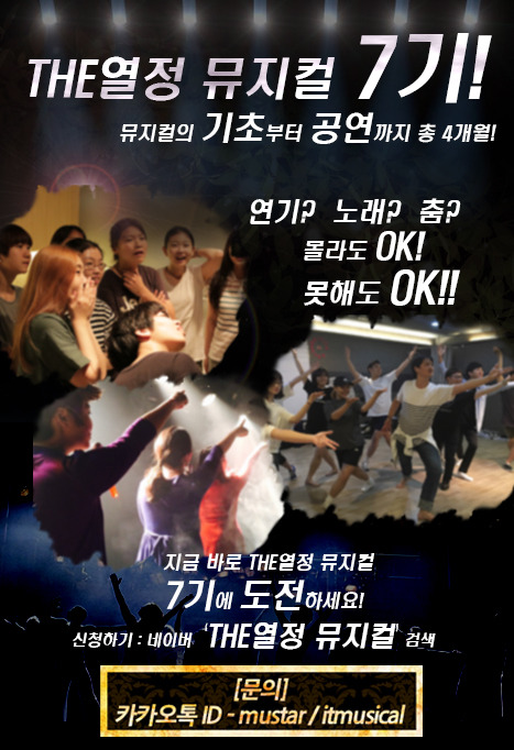 연기? 노래? 춤? 몰라도 OK, 못해도 OK!! THE열정 뮤지컬 7기 모집! 작성자hongbb|작성시간16.08.25|조회수27 목록 댓글 0 글자크기 작게가 글자크기 크게가 다음검색 현재 게시글 추가 기능 열기 북마크 공유하기 신고 센터로 신고 댓글 댓글 0 댓글쓰기 답글쓰기 댓글 리스트