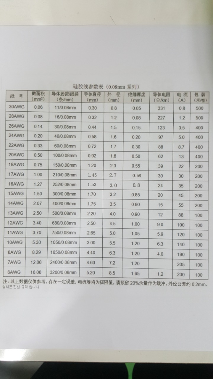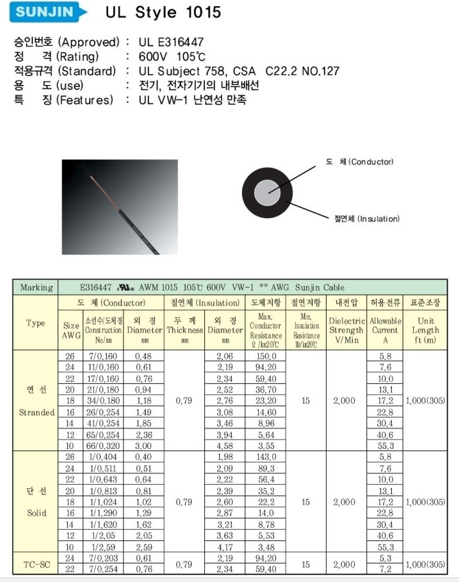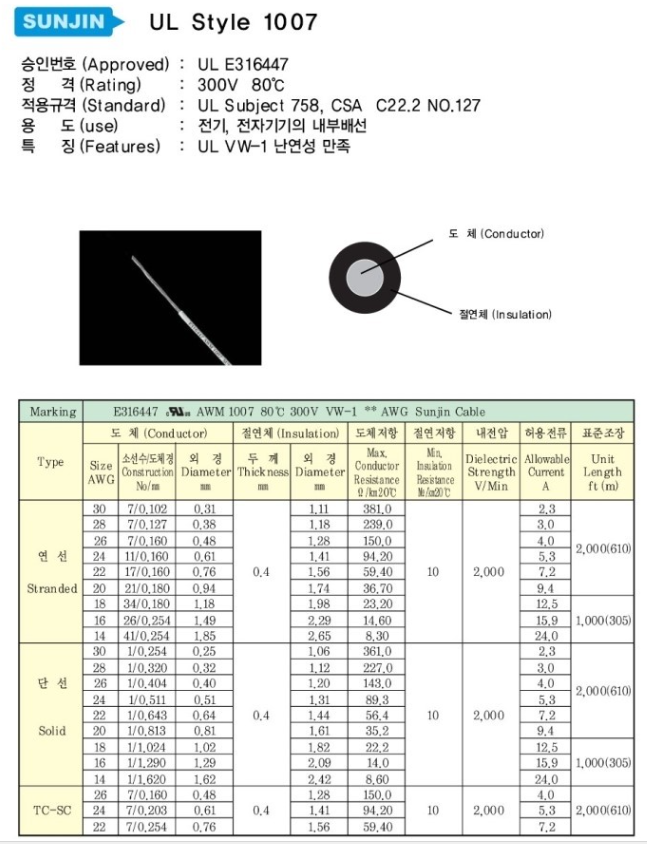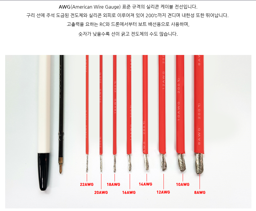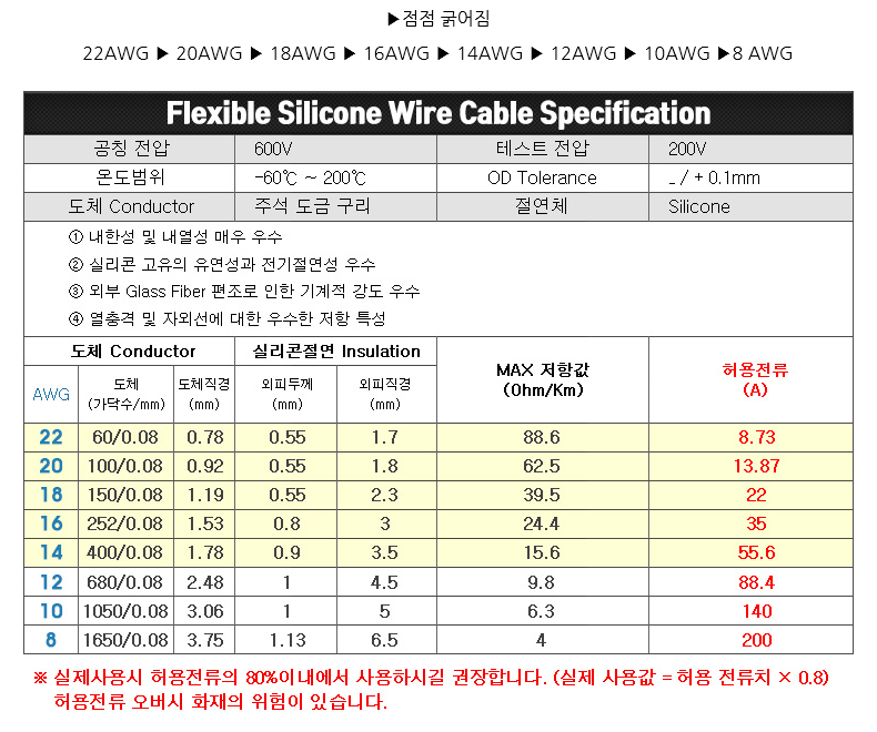 실리콘전선 UL3239 AWG8~AWG20 허용전류