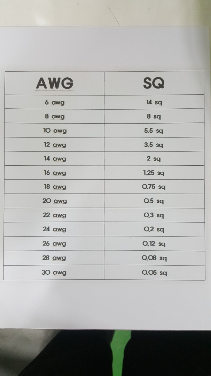 하지만 안전을 위하여 AWG8번 8sqmm 전선을 추전 합니다