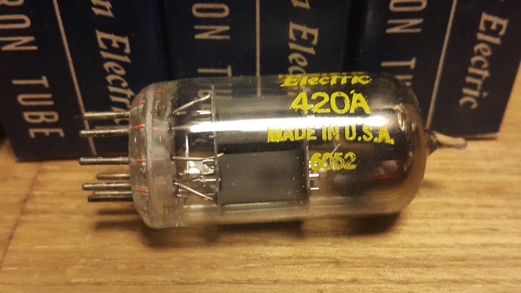 ■ Western Electric 420A (6052) + 아답타 (12AX7) - NOS -사진대로 NOS입니다. (사진참조) -WE420A → 12AX7 에 사용할 수 있도록 해주는 아답타는 금속제? 파이프에 금도금 소켓이 장착된 특주품으로 동종중 가장 고급지지 싶습니다. -제조코드 넘버 : 6052 ***dayaudio 에 실린 WE 420A 사용기 입니다. 12AX7을 420A로 교체후 놀라운 성과를 거두었다는군요 그리고 댓글중 WE에서 튜브 설계를 했다는 엔지니어는 "755 / 420a 튜브는 내부적으로 mullard 12ax7 ecc83과 매우 유사합니다." 라고 썻네요. 아울러 "대형 게터가있는 Raytheon 5755 / 420a는 서양의 전기 투명 꼭대기와 Raytheon 또는 Tungsol Clear Top과 다릅니다. 12ax7 ecc83을 대체 할 수있는 최상의 결과를 얻기 위해 커다란 게터가 있어야 합니다." 라고 썻네요... http://www.diyaudio.com/forums/tubes-valves/260845-raytheon-western-electric-jw-5755-420a.html ***소리전자에 WE 420A 가짜에 관한 글이 있어서 참고로 올립니다.