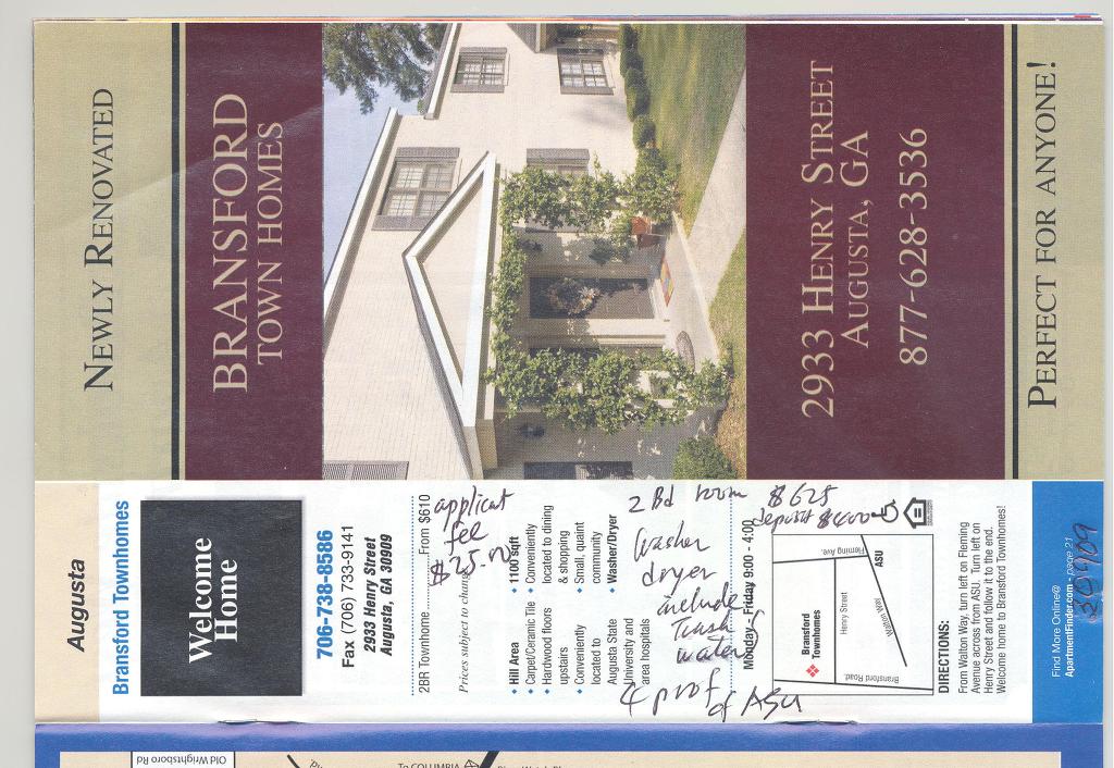 apartmentfinder.com에 가서 Augusta, GA로 검색하면 Bransford Townhomes에 대한