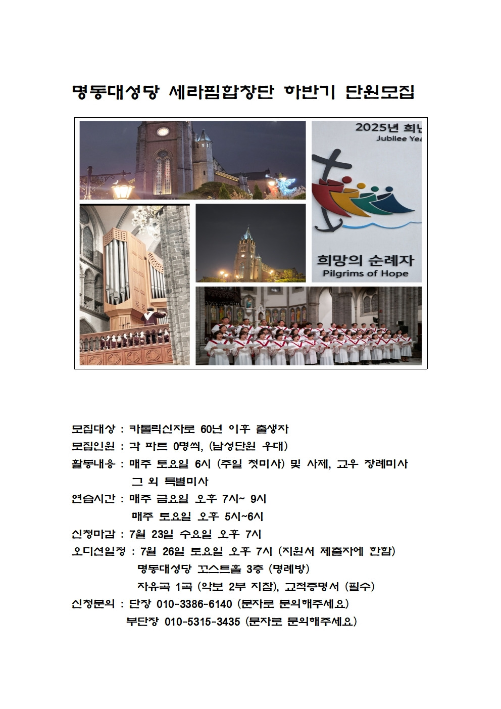 [스크랩] 명동대성당 세라핌합창단 하반기 단원모집합니다 작성자전은선 글라라|작성시간25.07.02|조회수31 목록 댓글 0 글자크기 작게가 글자크기 크게가 다음검색 스크랩 원문 : 가톨릭 성가대 현재 게시글 추가 기능 열기 북마크 공유하기 신고 센터로 신고 댓글 댓글 0 댓글쓰기 답글쓰기 댓글 리스트