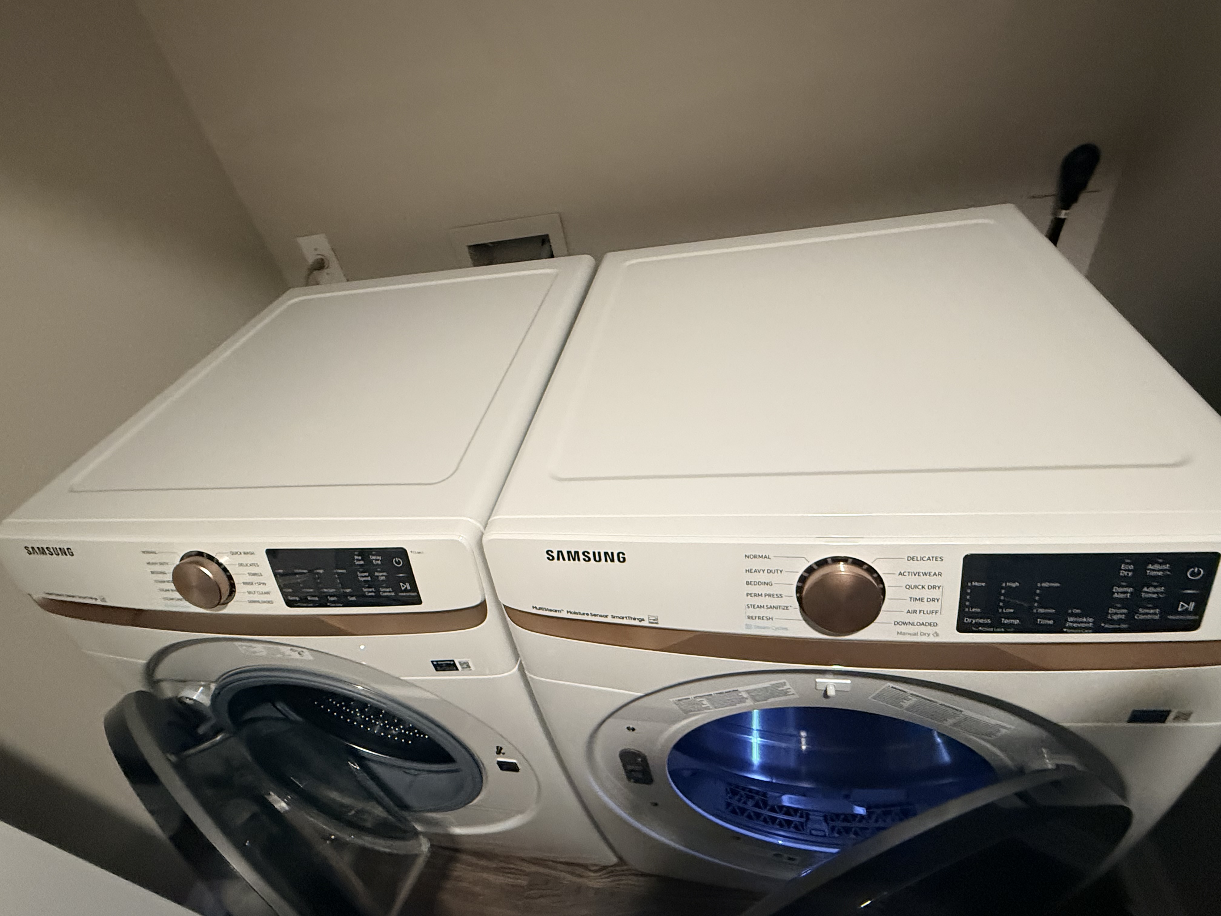 올해 9월에 미국와서 구입한 삼성드럼 세탁기&건조기 판매합니다. 콘도라 임대 세탁기 사용하기 싫어서 구입하게 되었는데 2달 정도 아주 깨끗하게 사용하였습니다. 상판 앞면 다 기스 없이 깨끗합니다. 직장이직으로 인해 갑자기 타주로 이사가게 되었고 이사가는 집에 세탁기&건조기가 있어서 판매하고자 올립니다. 현재 집은 콘도미니엄이고 세탁기는 3층 에 있습니다 12월 18일 (목) 이사라 그날이면 이삿짐 업체 통해 1층에 내려 드릴 수 있고 그 전에 필요하시면 해체하셔서 가져가셔야 합니다. 자세한 스펙 링크 걸어 드립니다. Austin cannan creek 입니다 하나가격에 가져가시기 바랍니다. 세탁기 &건조기 두개 가격은 ($600.00) 입니다. 문의 바랍니다. (619-689-육삼이일)