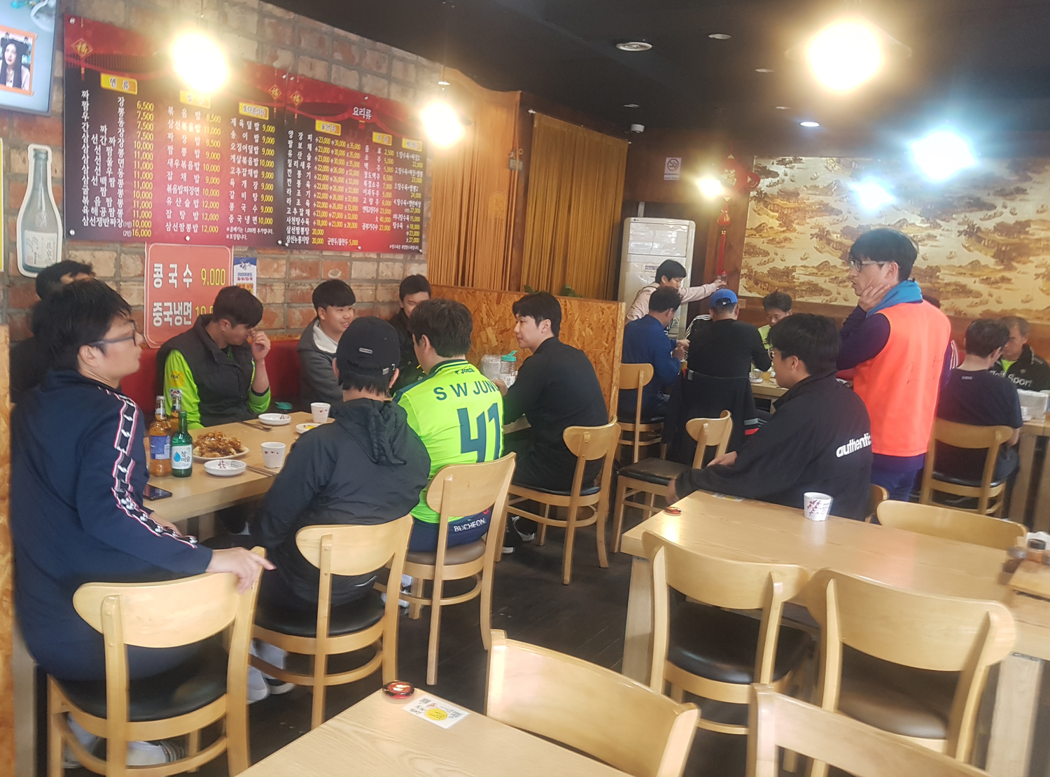 게임 후에 중식집에서 20명 정도 참석하여 전체 회식이 있었습니다.