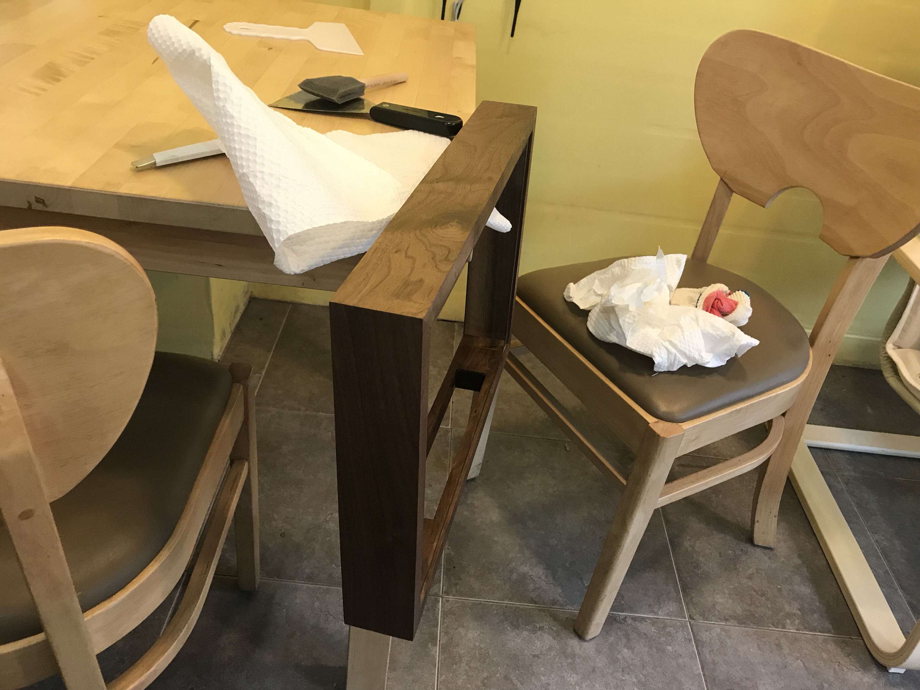 우드베이스를 지인께서 제작해주셨습니다. 저는 마감센딩과 오일마감만 했습니다. 참 곱게 잘 나왔습니다.