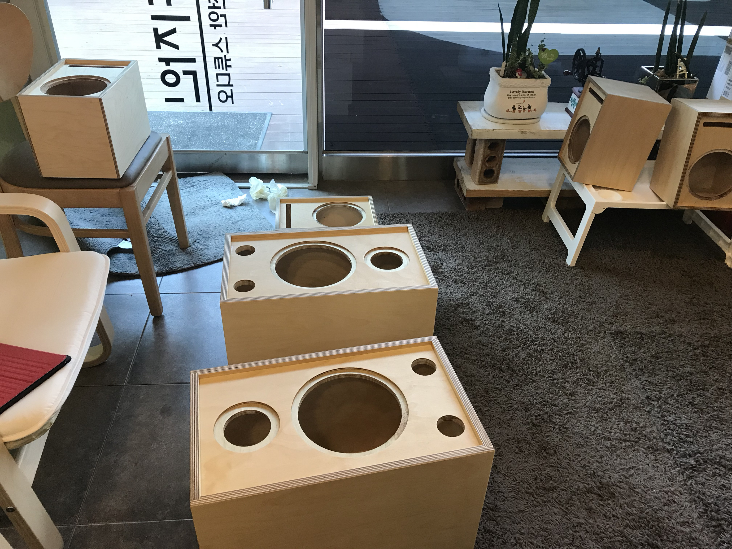 6.6인치 풀레인지용 인클로저입니다. 목공본드로 집성하고 센당작업 그리고 오일마감으로 말리는 중입니다.