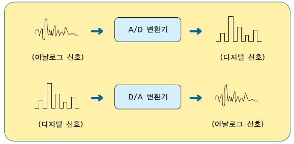 - 아날로스 신호를 디지털로 변환 ; A/D 변환기
