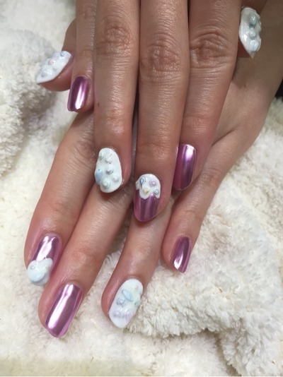 ストーンの上から白を塗ることで、下のストーンの色がうす~く透けるのが可愛い♡