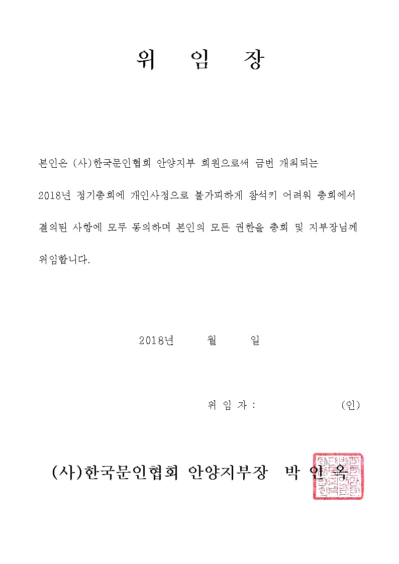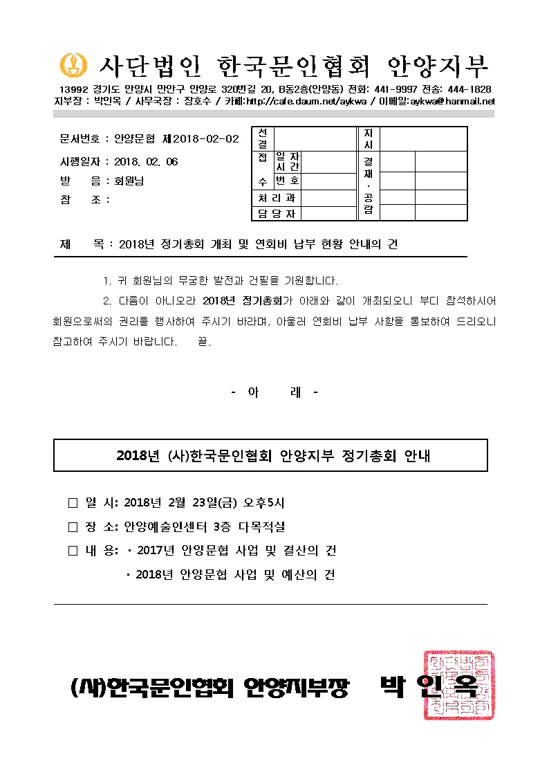 [ 2018년 안양문협 정기총회 개최 안내 ]