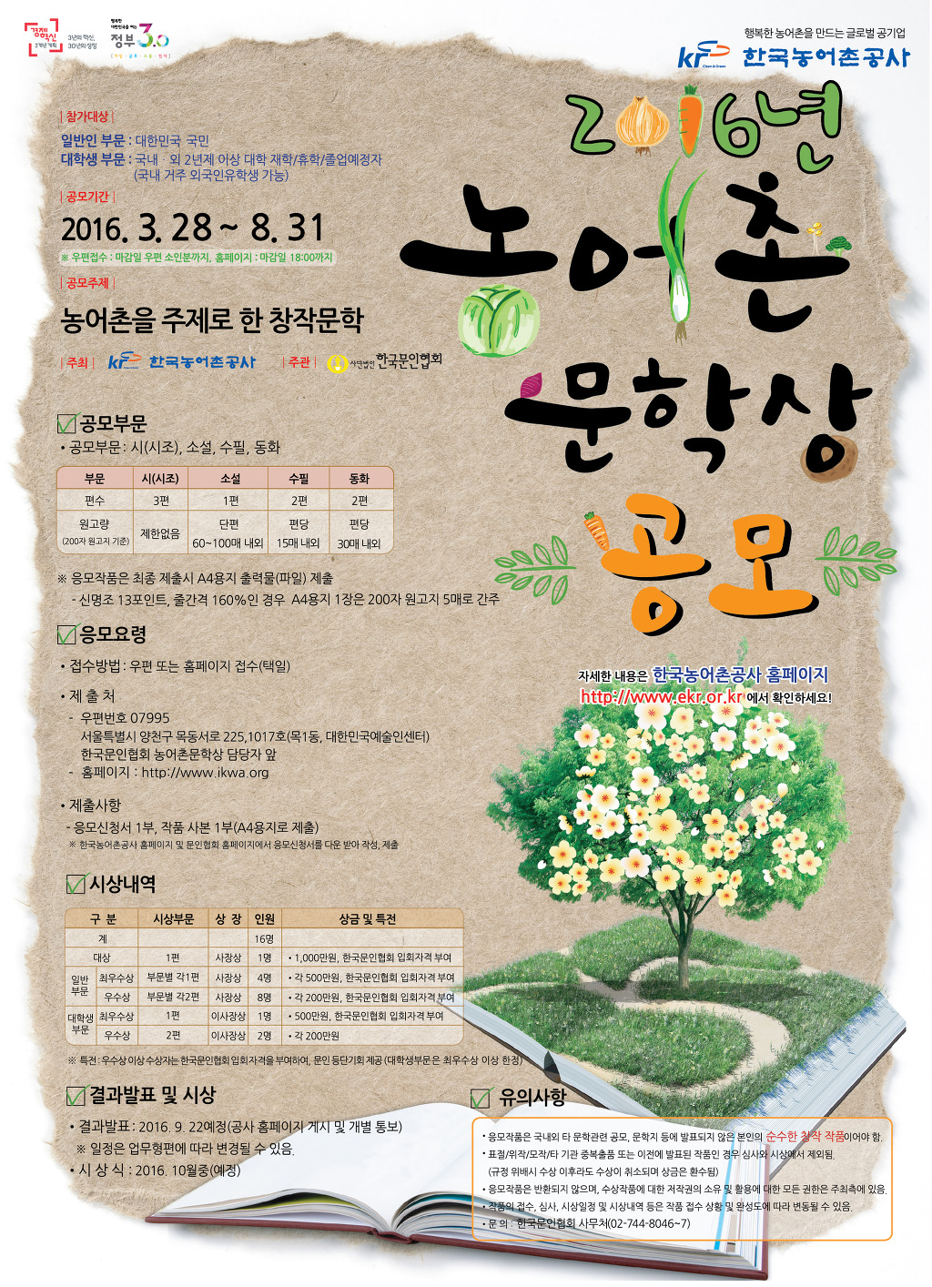 ※ 한국농어촌공사 홈페이지 및 한국문인협회 홈페이지에서 응모신청서를 다운 받아 작성, 제출