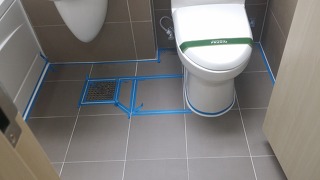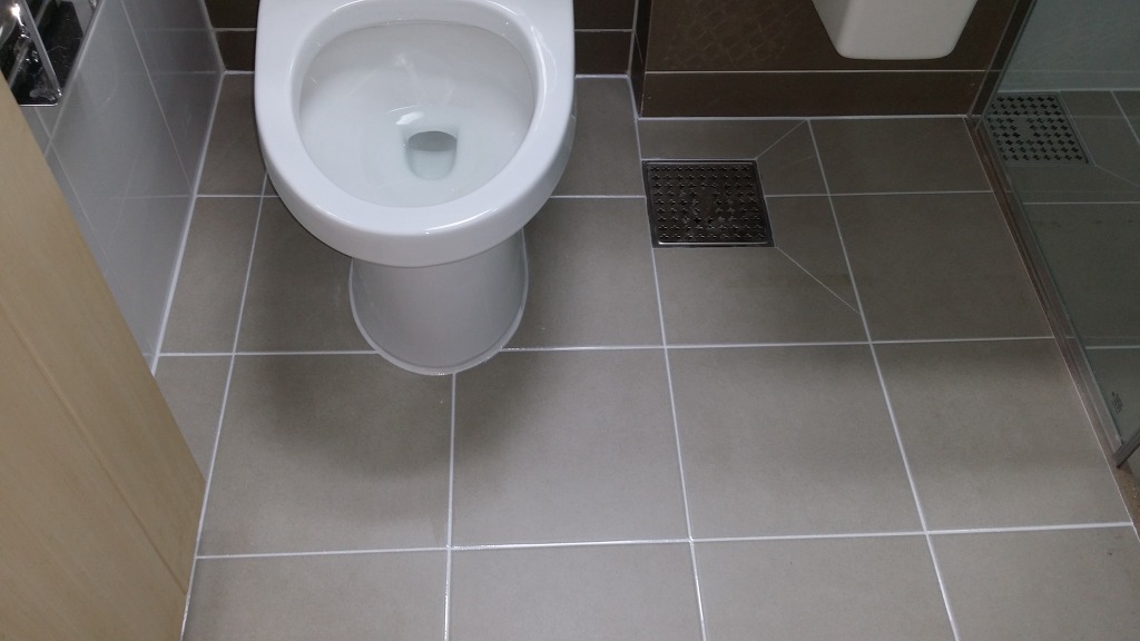 * 배수구 주변 단차가 심한 곳도 마스킹작업 후 시공으로 줄눈제의 흘러내림을 방지합니다.