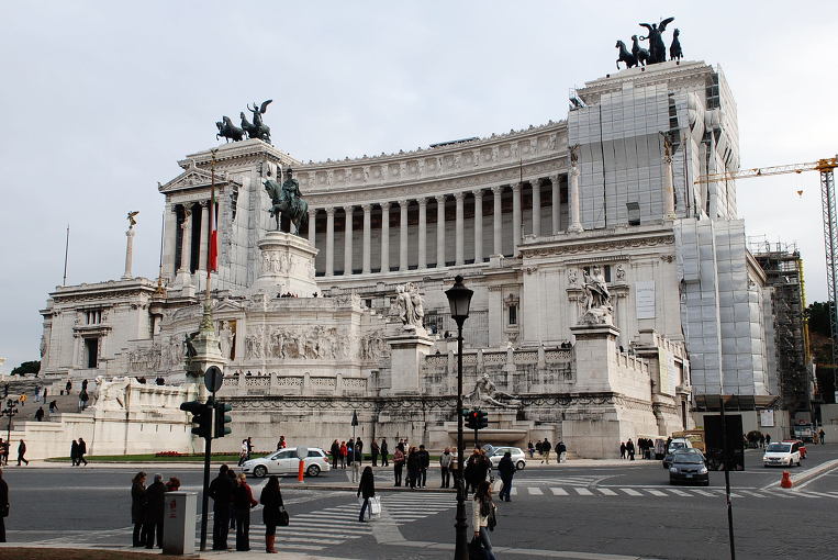 백색이 너무 강조된 이 건물은 건축가 '쥬세뻬 사꼬니(Giuseppe Sacconi)'의 작품으로서 통일 이탈리아 왕국 선포 50주년인 1,991년에 완공되었다. 신 고전주의 양식의 마지막 기념물로서 광장을 압도하고 있기도 하다. 그러나 로마라는 특수한 중세의 도시분위기에 너무 튀는 건물이라고 하여 시민들로부터는 외면당하고 있는 그런 건물이기도 하다.
