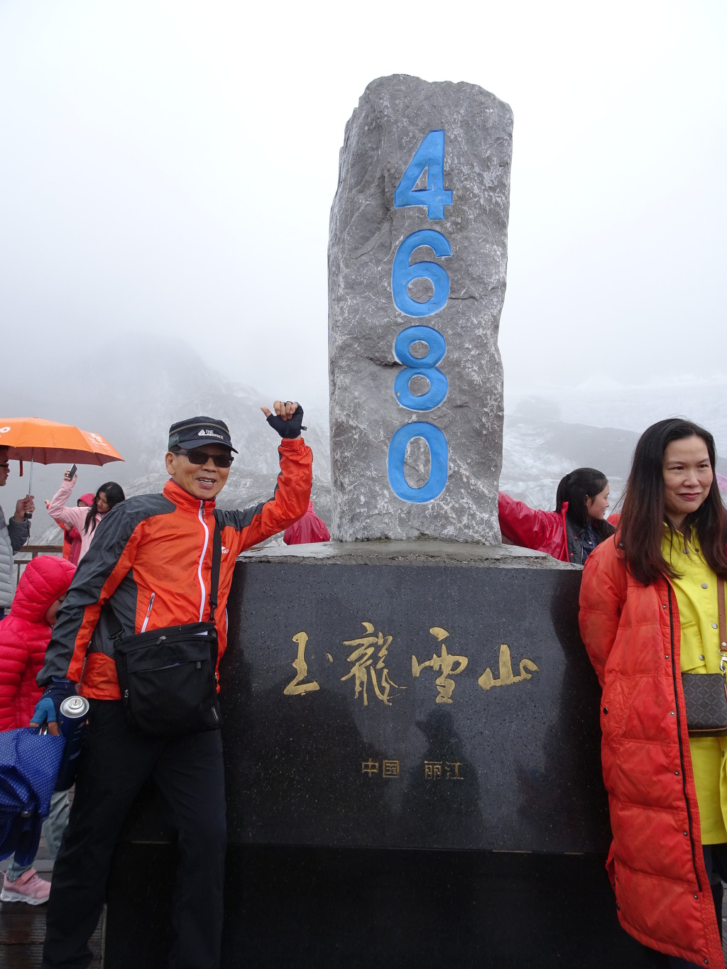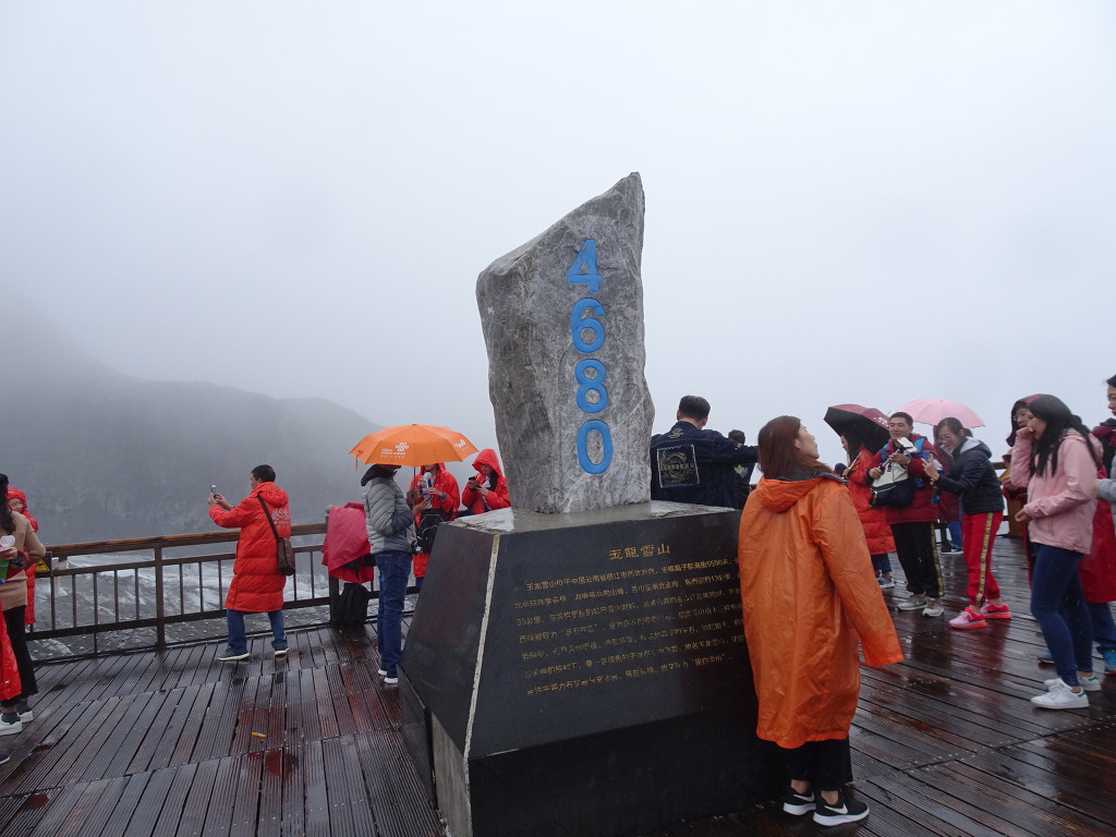 옥룡설산 (4,680m)....산소부족으로 라이타불도 켜지지 않는다.....휴대용 산소통이 필수..오른손엔 산소캔을 들고 인증사진.