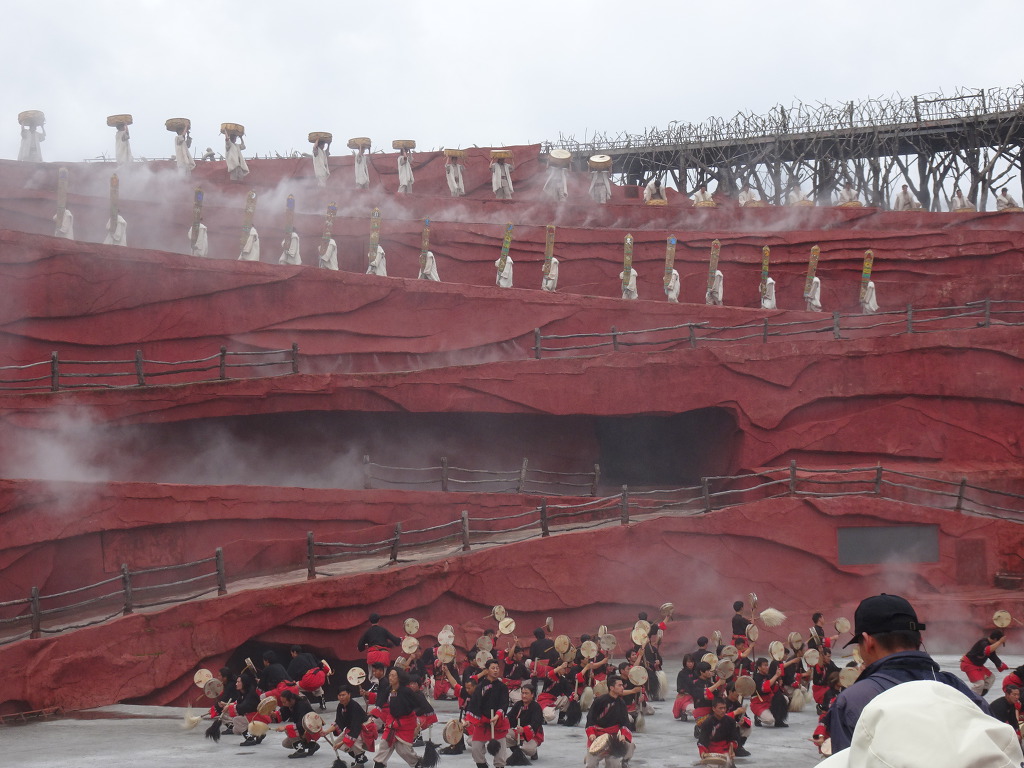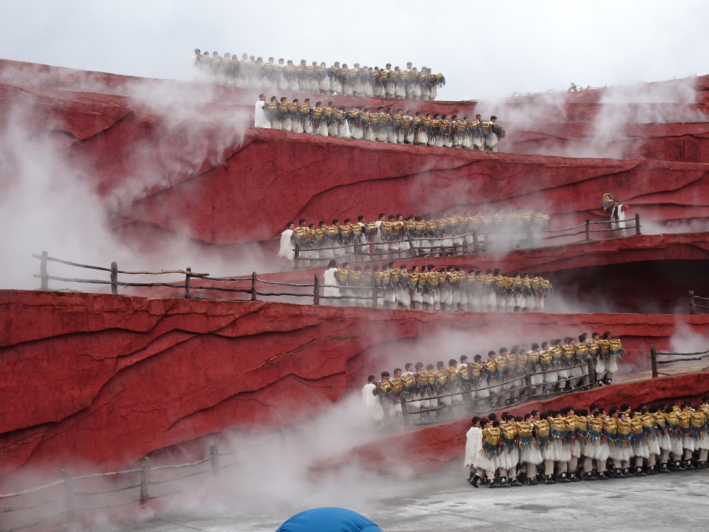 인상여강쇼...약 1시간 소요.500여명의 10개소수민족과 100여마리의 말이 출연하여 마방과 나시족의 생활 모습을 표현하고 있디.