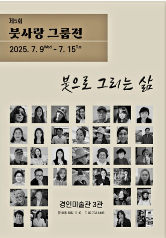 이 붓사랑 밴드 회원들이 2025년 7월 9일부터 7월 15일까지 경인미술관 3관에서 ‘붓으로 그리는 삶’ 展 제5회 붓사랑그룹전을 연다.