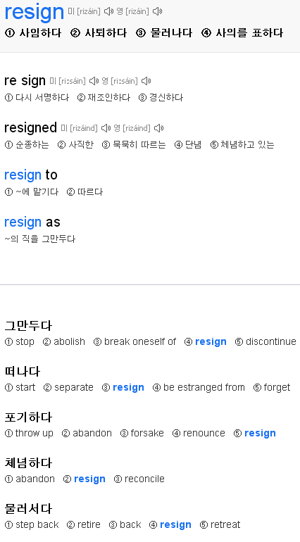 그래서 "resign"이라는 단어의 의미가 무엇인지