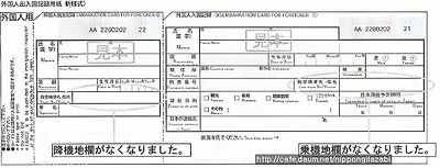 [[여행정보]]바뀐 일본 출입국 카드(11월 19일부터 적용) 작성자whcenter|작성시간08.11.20|조회수12 목록 댓글 0 글자크기 작게가 글자크기 크게가 ※ 변경사항 앞면 : 외국인등록 증명서번호 / 승기지 / 착기지 기재란 삭제 뒷면 : 날짜 기재란 삭제 다음검색 현재 게시글 추가 기능 열기 북마크 공유하기 신고 센터로 신고 댓글 댓글 0 댓글쓰기 답글쓰기 댓글 리스트
