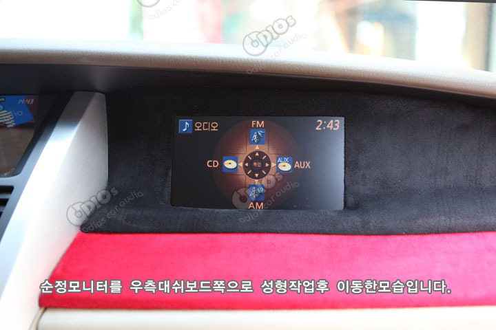 뉴SM7 RE35 순정AV시스템 탈착이 불가능한작업을 순정모니터 를 우측 대쉬보드 쪽으로 성형작업하여