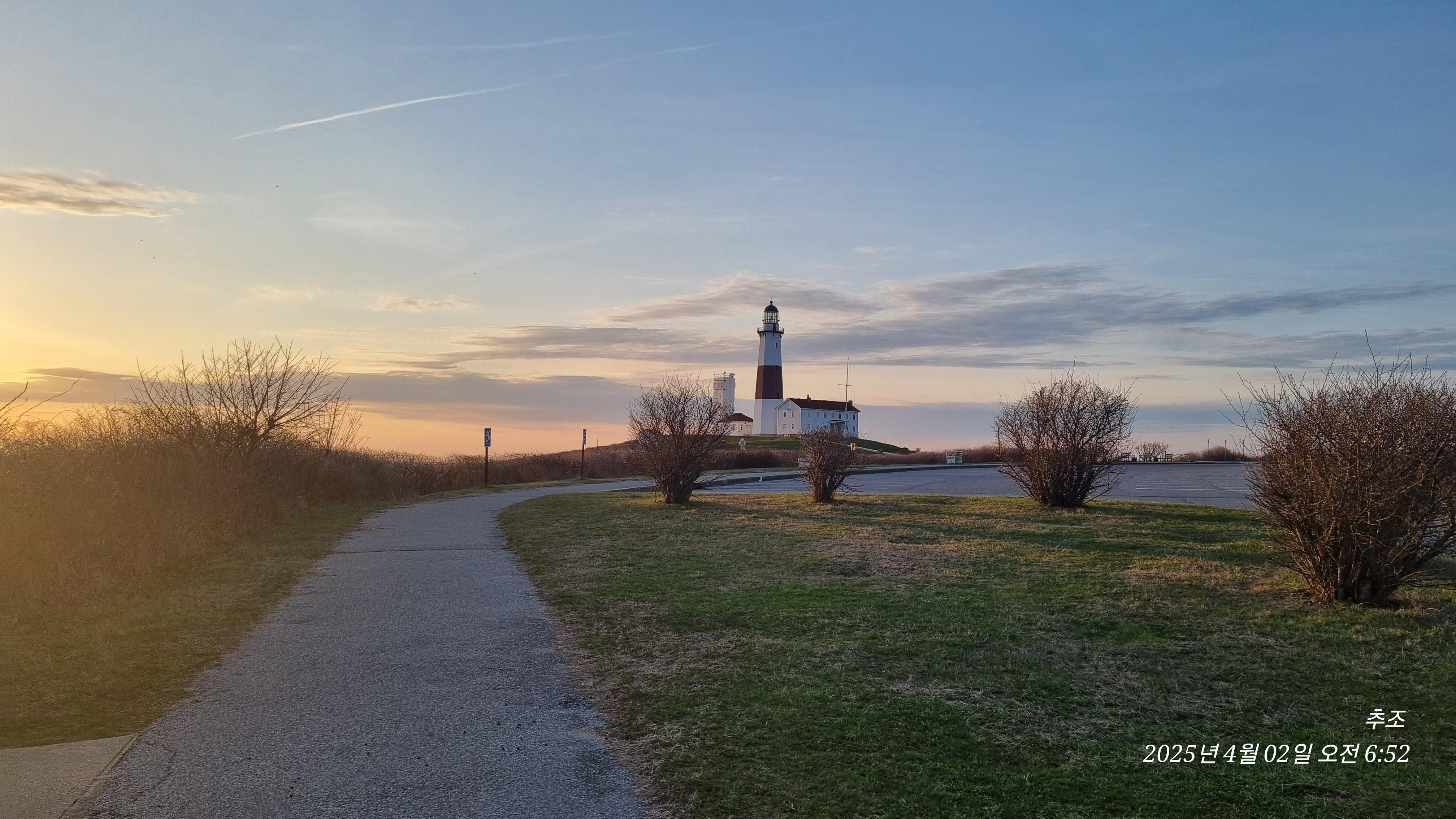 그러나 완전한 기우였다. 두 시간쯤 운전했을까, 얼마 남지 않았다 싶은 5시 40분경부터 길이 막혔다. 편도 2차선 도로는 가다 서기를 반복했다. 그런 길을 30분이나 걸려 겨우 벗어나자, 네비가 동네 골목길을 안내했다. 출발할 때 계획과는 다르게 몬탁 스테이트 파크에 들어선 6시 40분경에는 동이 트고 있었고, 등대에 도착한 6시 50분에는 이미 해가 수평선 한참 위에 떠 있었다. 인생이 언제 계획대로 된 적이 있었던가.