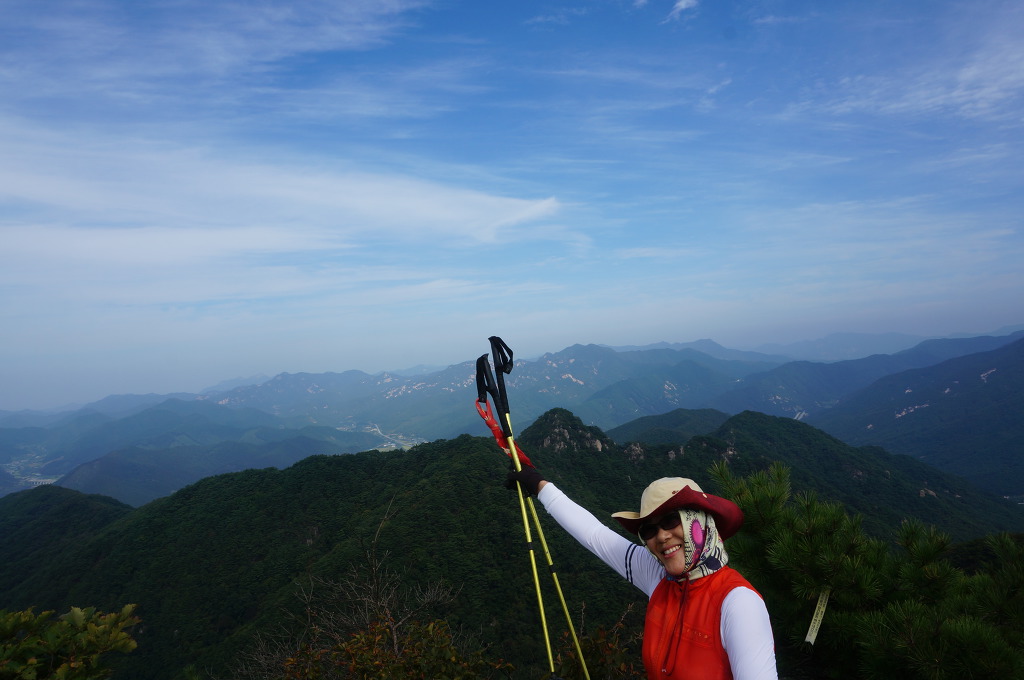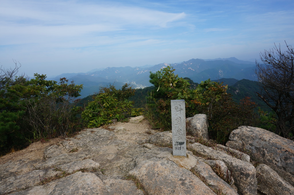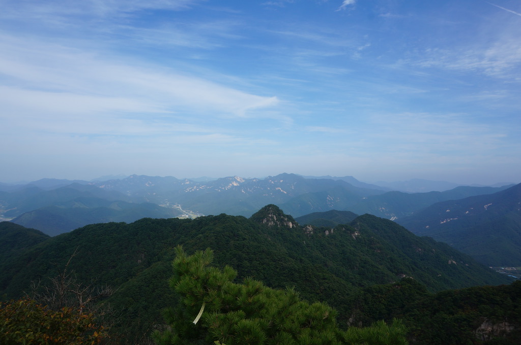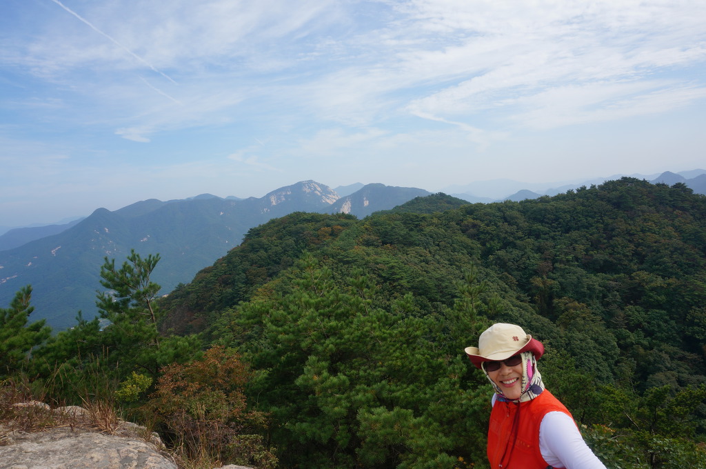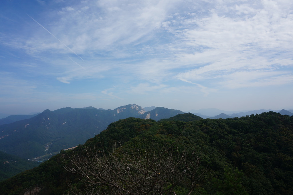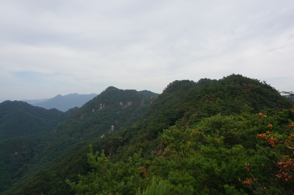 마분봉 뒤로 멀리 중대봉과 대야산이 조망됩니다.