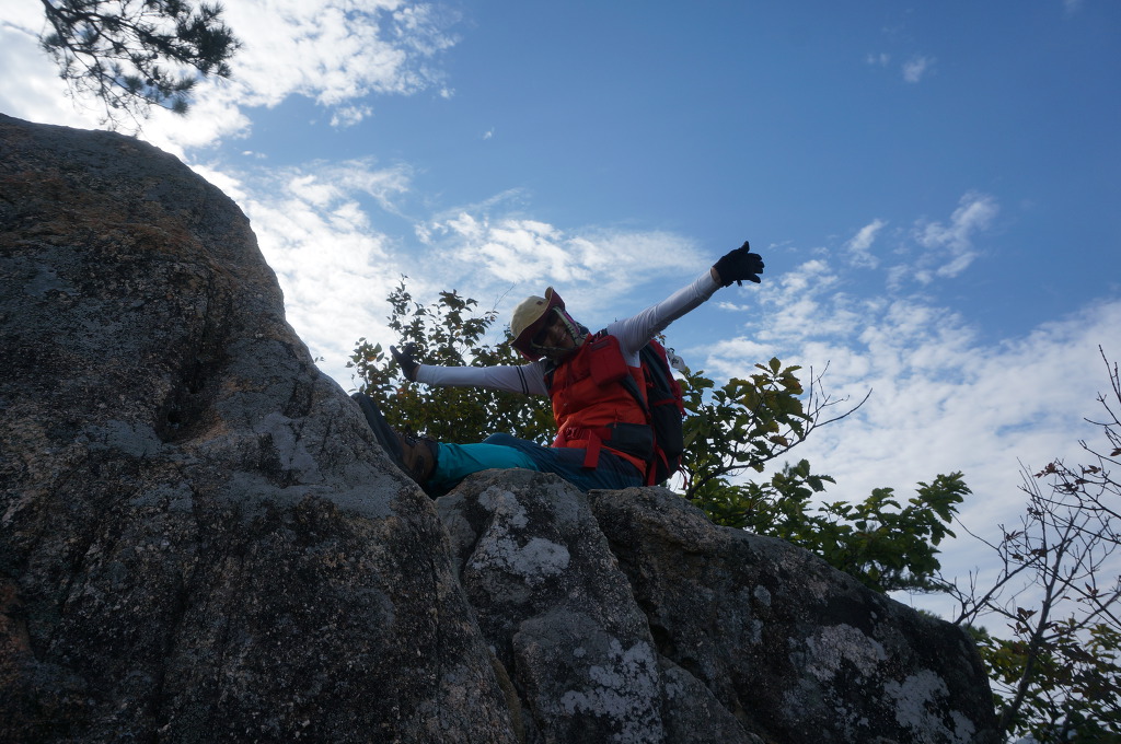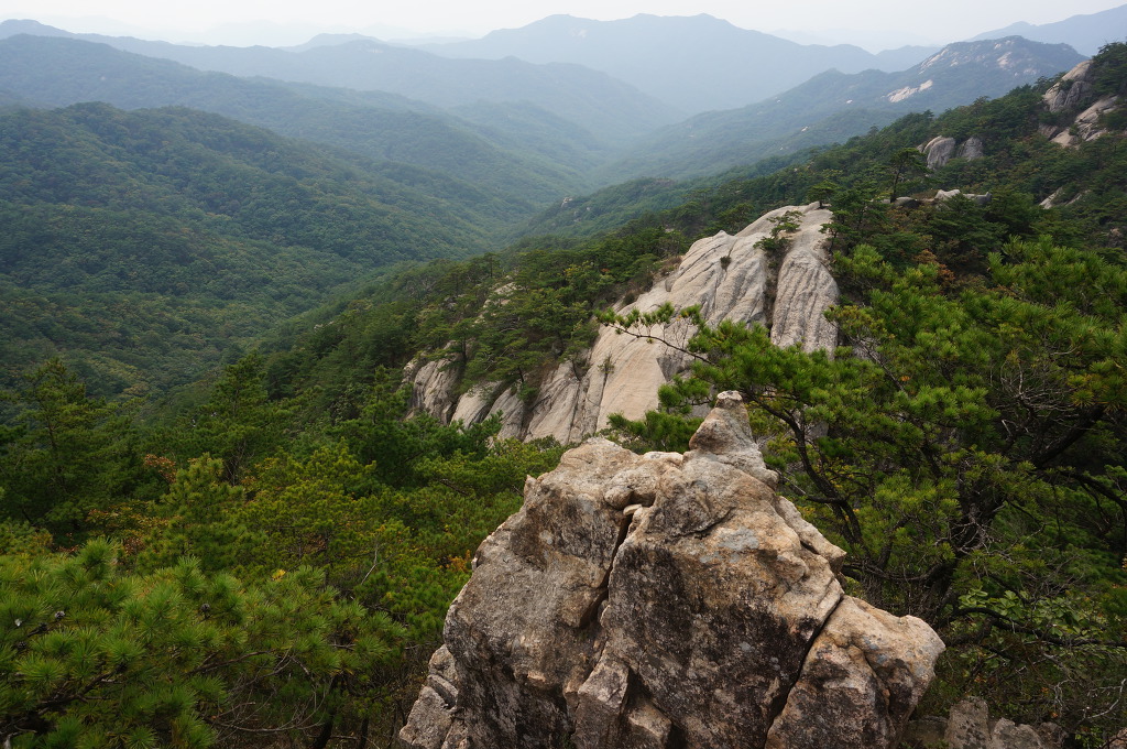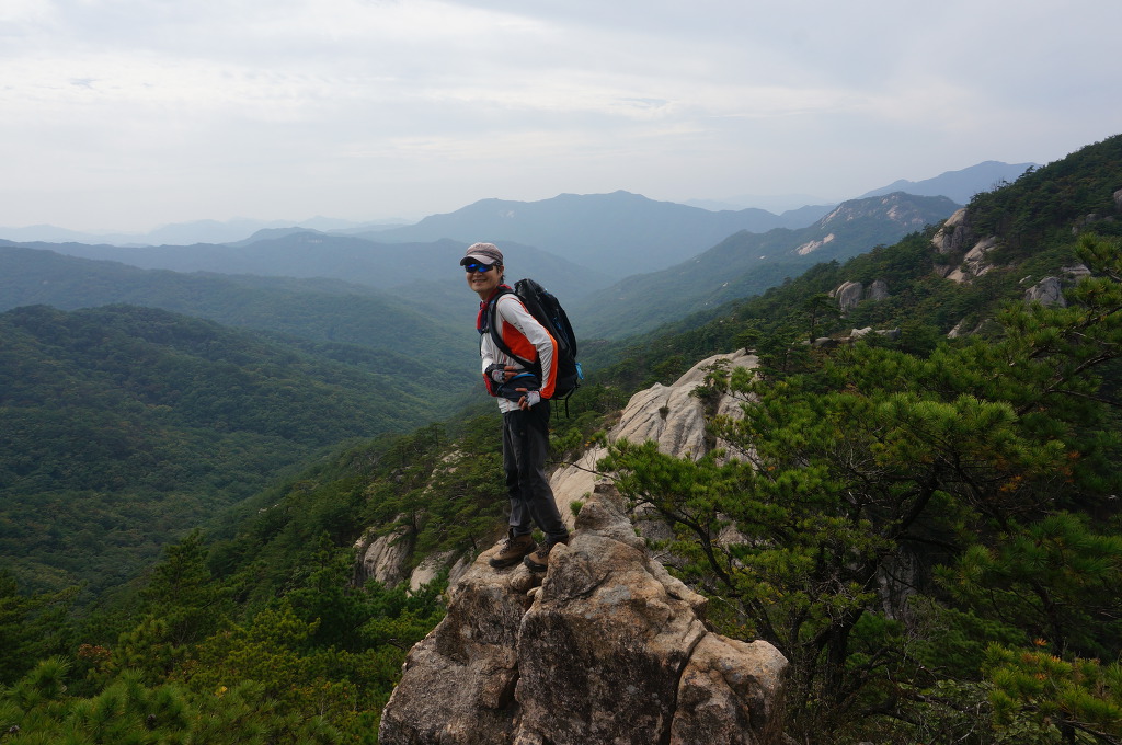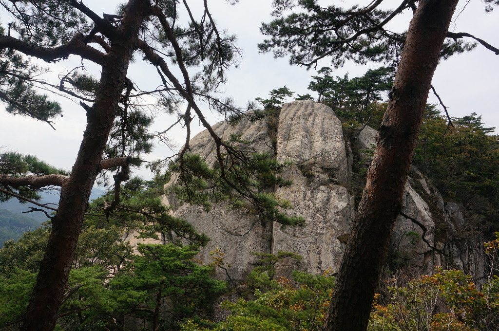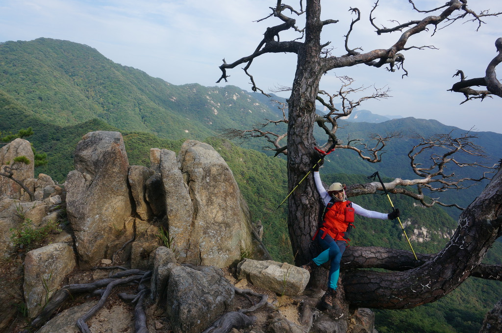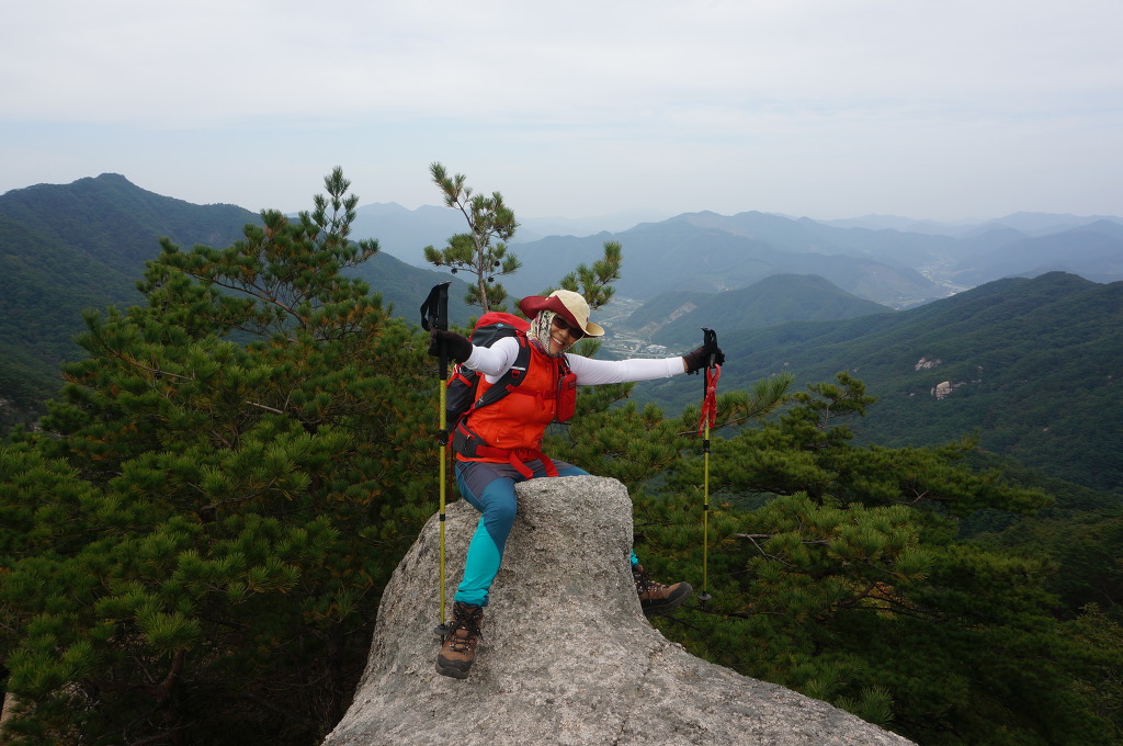마분봉 뒤로 멀리 중대봉과 대야산이 조망됩니다.