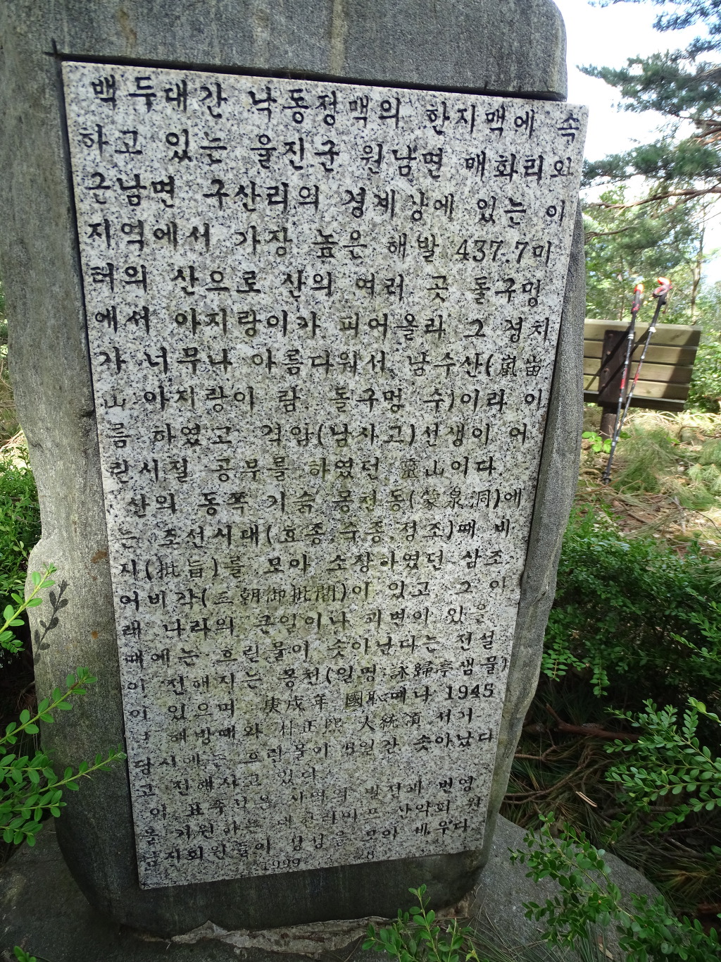 남수산의 내력이 설명되있는 정상석 뒷면